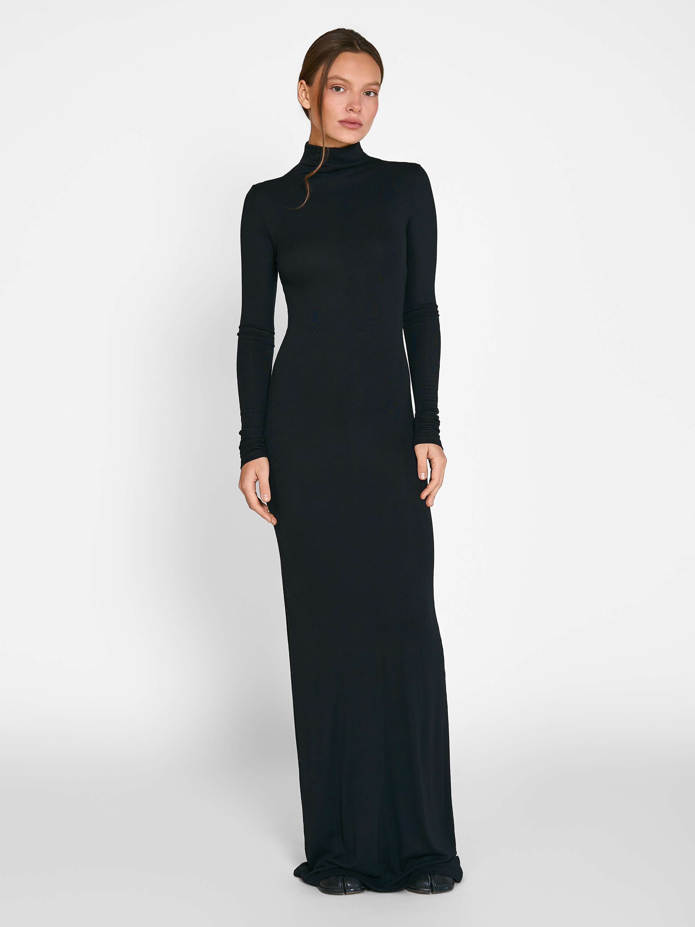 Платье Elysia, длина макси, облегающего кроя, с длинным рукавом и горлом. Модель выполнена из смесовой трикотажной ткани средней плотности. Хорошо тянется и держит свою форму. Параметры модели Рост: 170 см Грудь - 80 см, талия - 60 см, бедра - 89 см Размер на модели: XS