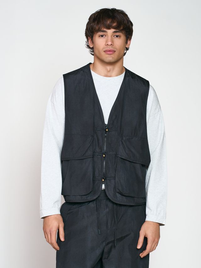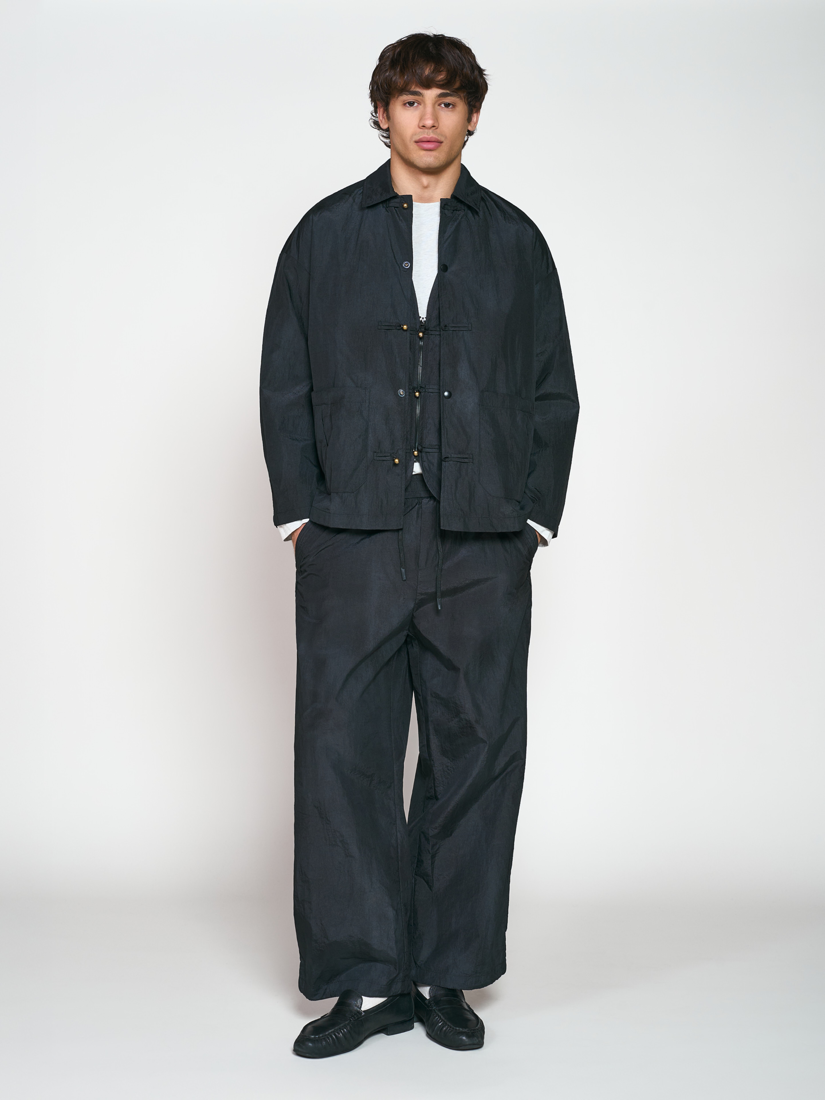 Брюки свободного кроя, прямого силуэта. Модель выполнена из материала, который отлично подходит для активного отдыха или спорта. Ткань имеет мятую фактуру с небольшим переливом. Пояс полностью сделан на резинке с кулисками для универсальности посадки. Два боковых прорезных кармана и два задних накладных. Можно сочетать с оверсайз худи, ветровками или бомберами. Также для данной пары можно приобрести жилет и ветровку в азиатском стиле, выполненные из той же ткани с азиатскими элементами. Параметры модели Рост: 180 см Грудь - 90 см, талия - 75 см, бедра - 87 см Размер на модели: L