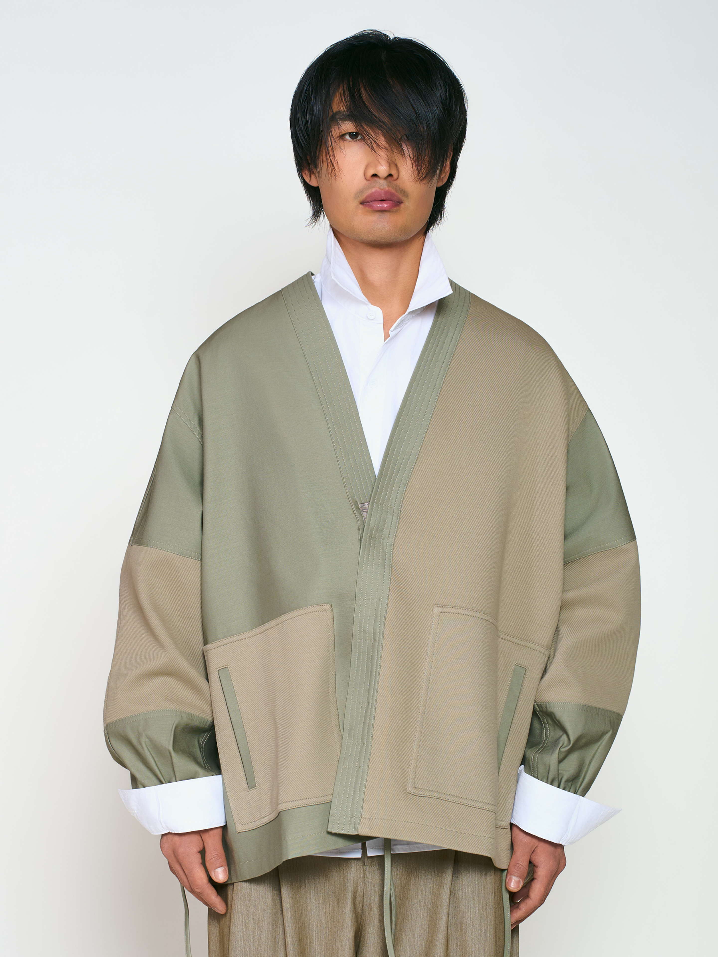 Кимоно свободно кроя - это стильный атрибут среди верхней одежды. Оно выполнено из разных по фактуре лоскутов хлопковой ткани. Манжеты рукавов сделаны с вставкой из резинки и с металлическими кнопками для более плотного прилега ния к телу. Спереди два врезных кармана. Изделие можно застегнуть на три металлические кнопки или завязать с помощью внутренних шнурков. Параметры модели: Рост: 188 см Грудь - 88 см, талия - 71 см, бедра – 90 см Размер на модели: L