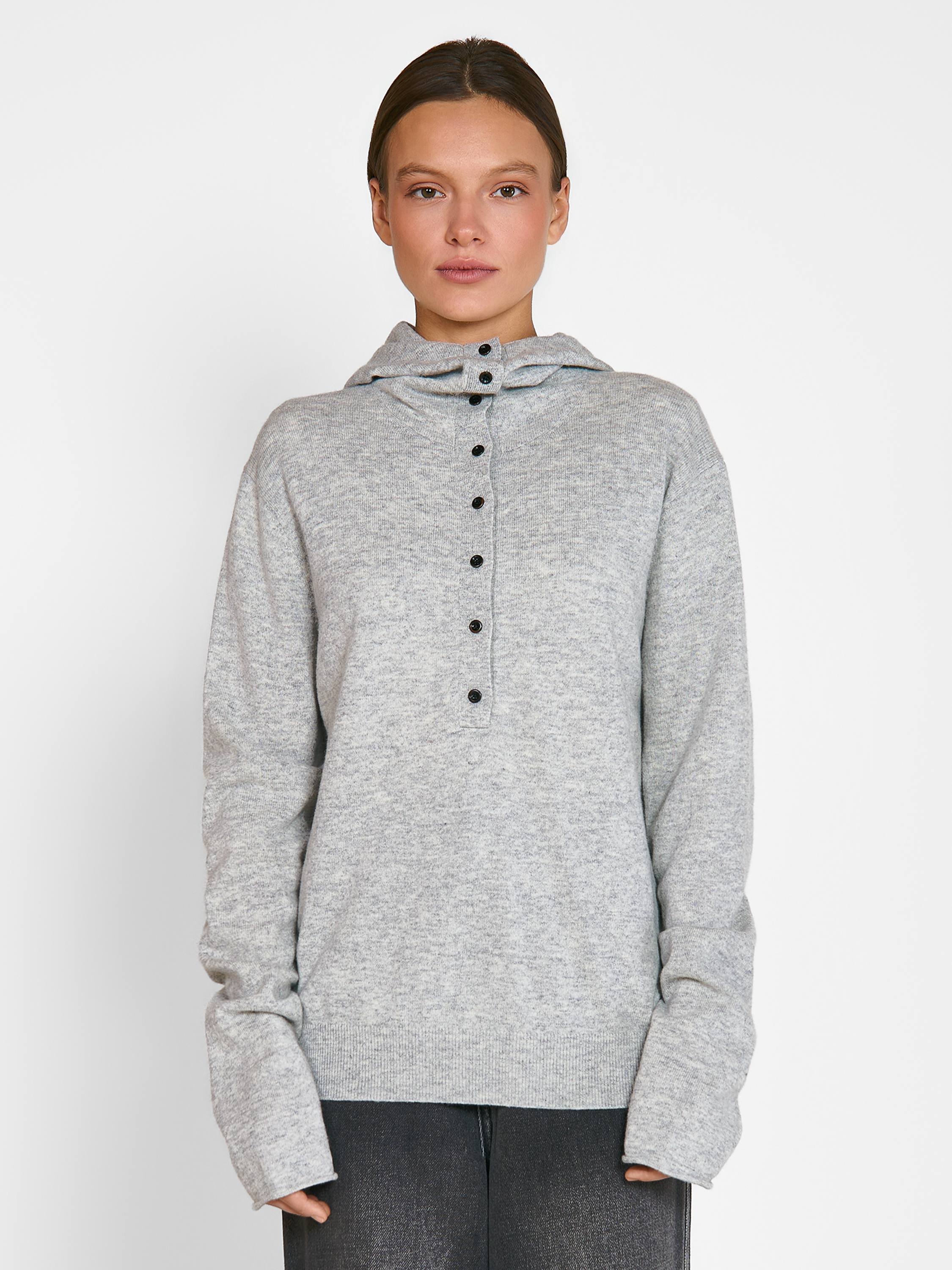 Худи Kokon свободного кроя, с капюшоном и высоким воротом. Модель выполнена из 100% мягкой шерсти средней плотности. Имеет контрастные пуговицы до середины груди. Параметры модели Рост: 170 см Грудь - 80 см, талия - 60 см, бедра - 89 см Размер на модели: ONE SIZE