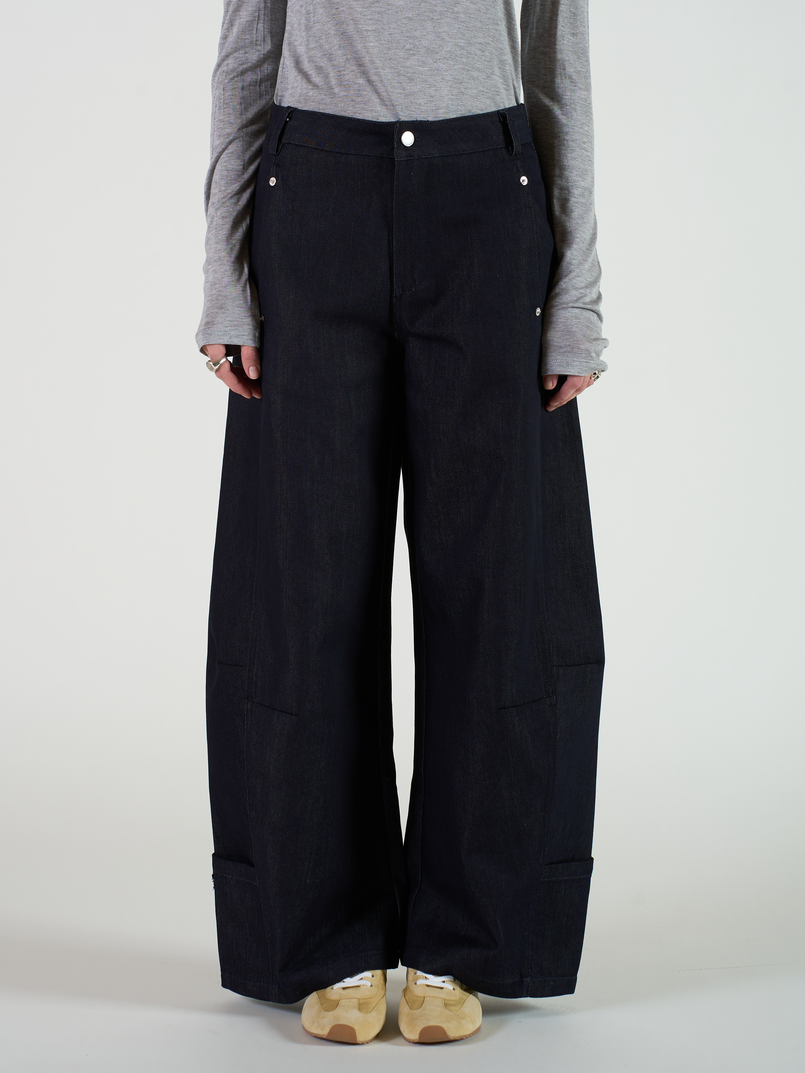 Джинсы Stash оверсайз кроя, О-силуэта с контрастными заклёпками. Изделие выполнено из денима средней плотности. Также у джинс два боковых прорезных кармана, спрятанных в передний шов. Задние карманы имеют скошенную форму благодаря выточкам, и присутствуют нижние скрытые карманы, которые можно застегнуть на пуговицы. Пояс со шлёвками для ремня, застёгивается на металлическую пуговицу и молнию. Параметры модели Рост: 173 см Грудь - 80 см, талия - 62 см, бедра - 90 см Размер на модели: S