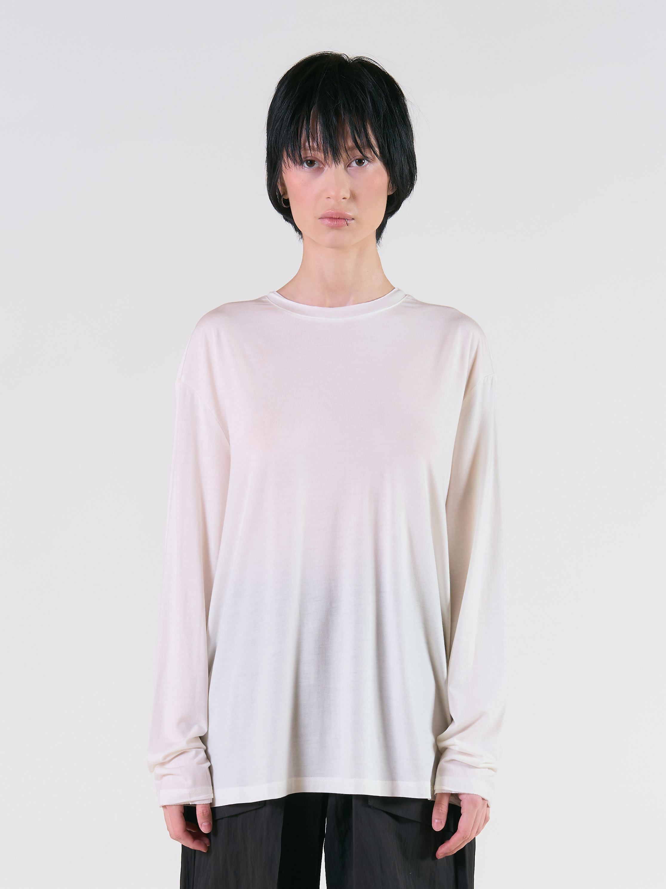 Лонгслив Torn свободного кроя и прямого силуэта. Края изделия порваны, что придает многослойности. Выполнен из нежной смесовой полупрозрачной ткани. Параметры модели Рост: 170 см Грудь - 83 см, талия - 56 см, бедра - 84 см Размер на модели: ONE SIZE