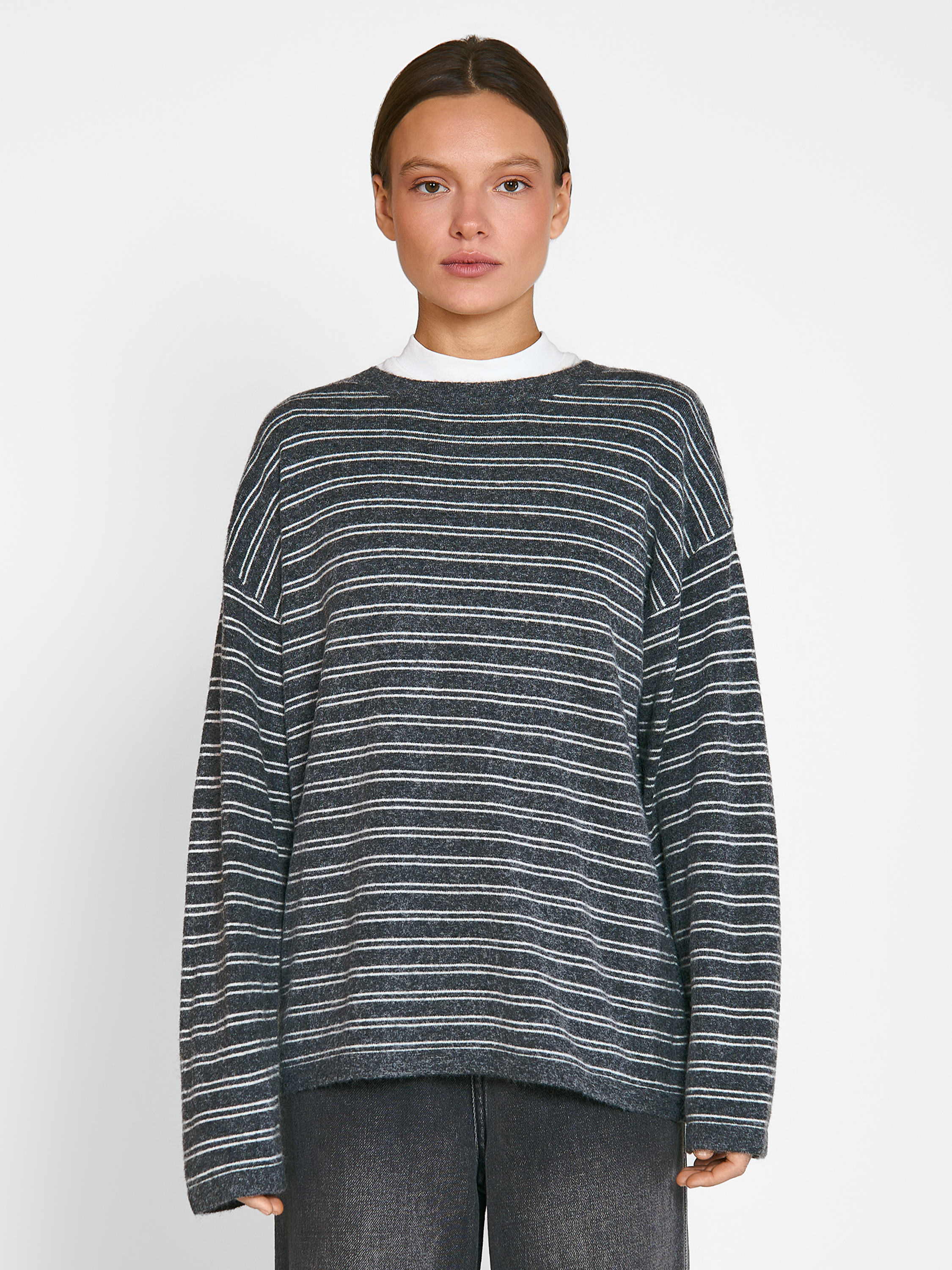 Вязанный лонгслив Argent, свободного кроя и спущенной линией плеча. Модель выполнена из смесовой пряжи с добавлением шерсти, в полоску. Параметры модели Рост: 170 см Грудь - 80 см, талия - 60 см, бедра - 89 см Размер на модели: ONE SIZE