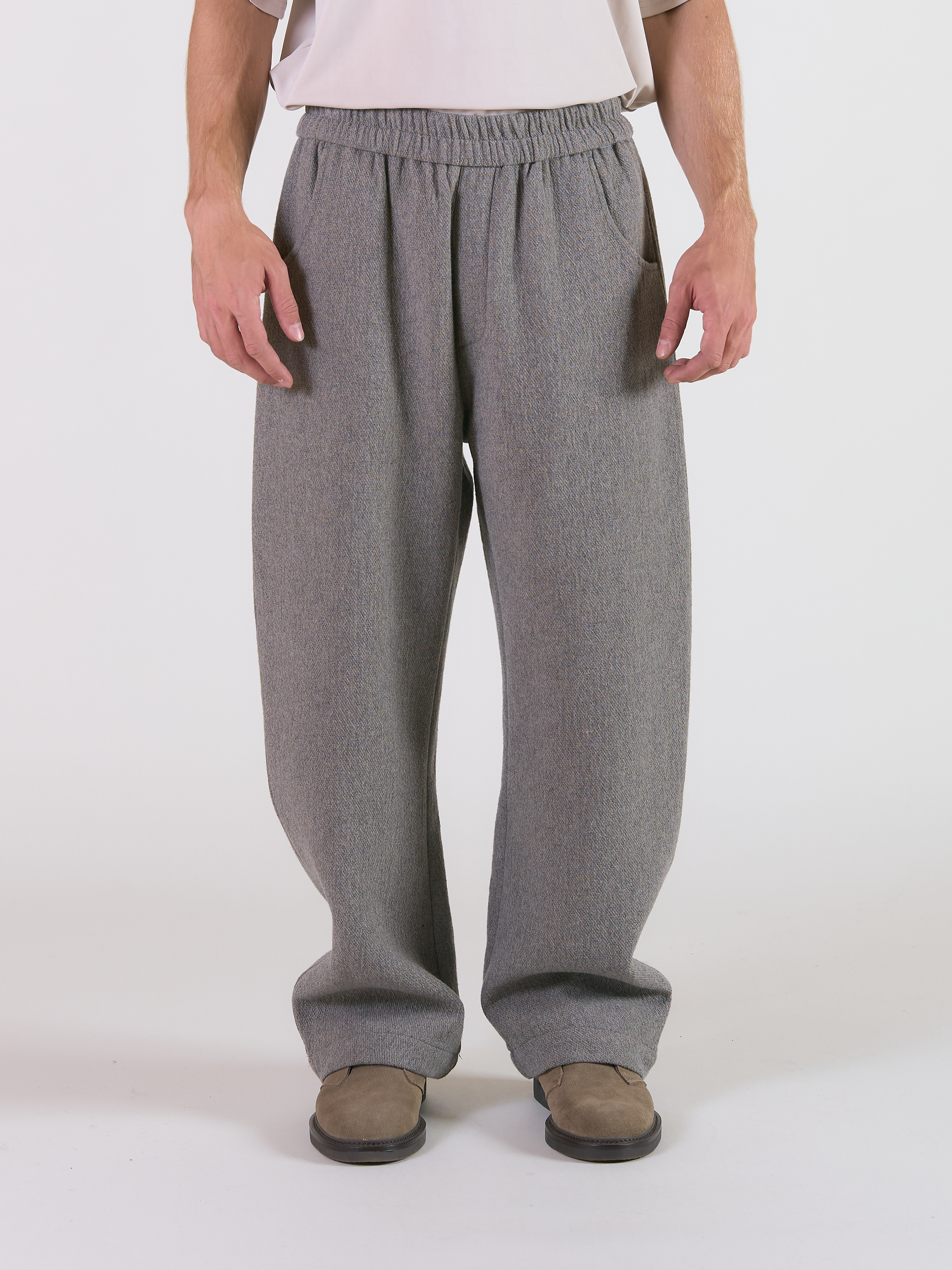 Утепленные брюки свободного кроя из плотной мягкой ткани с шерстью. Три кармана. Объем пояса регулируется кулиской и внутренним шнурком.