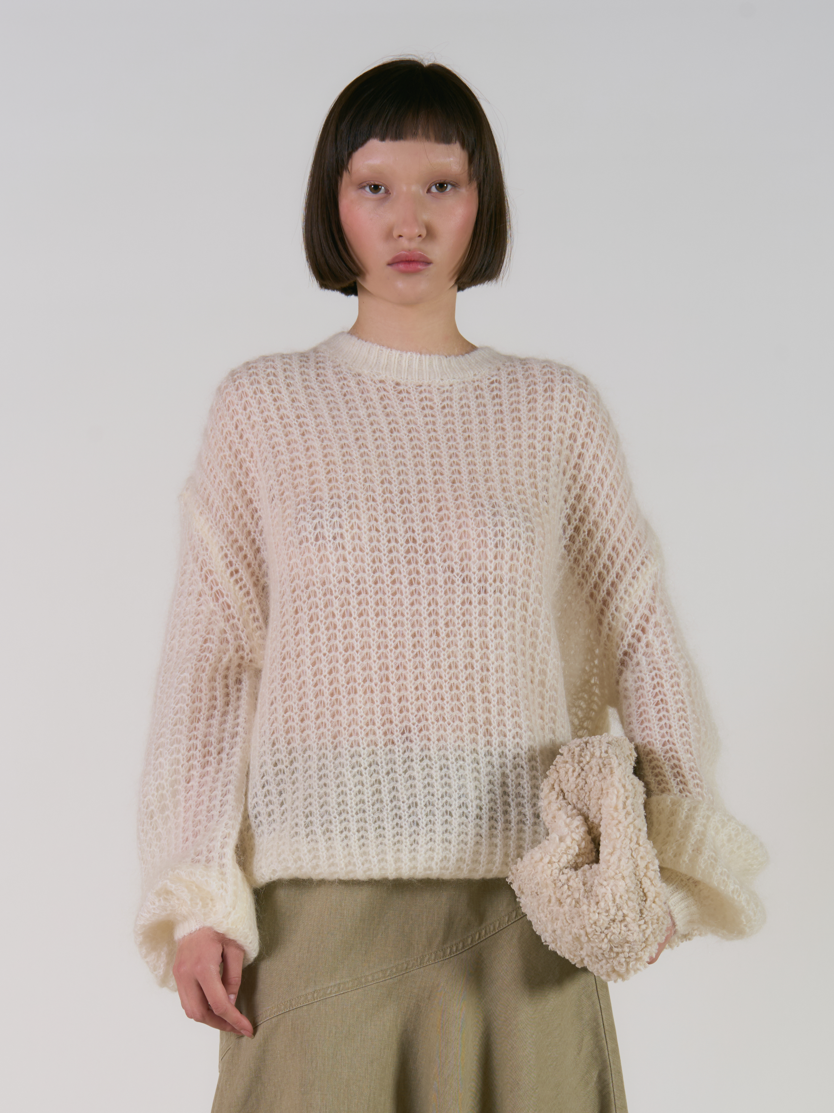 Джемпер Cloud Puff свободного кроя, напоминающий пушистое облако за счет своей свободной вязки. Модель выполнена из смесовой пряжи, благодаря этому сохраняет свои свойства. А вес изделия практически неощутим на теле. Параметры модели Рост: 164 см Грудь - 85 см, талия - 63 см, бедра - 93 см Размер на модели: ONE SIZE