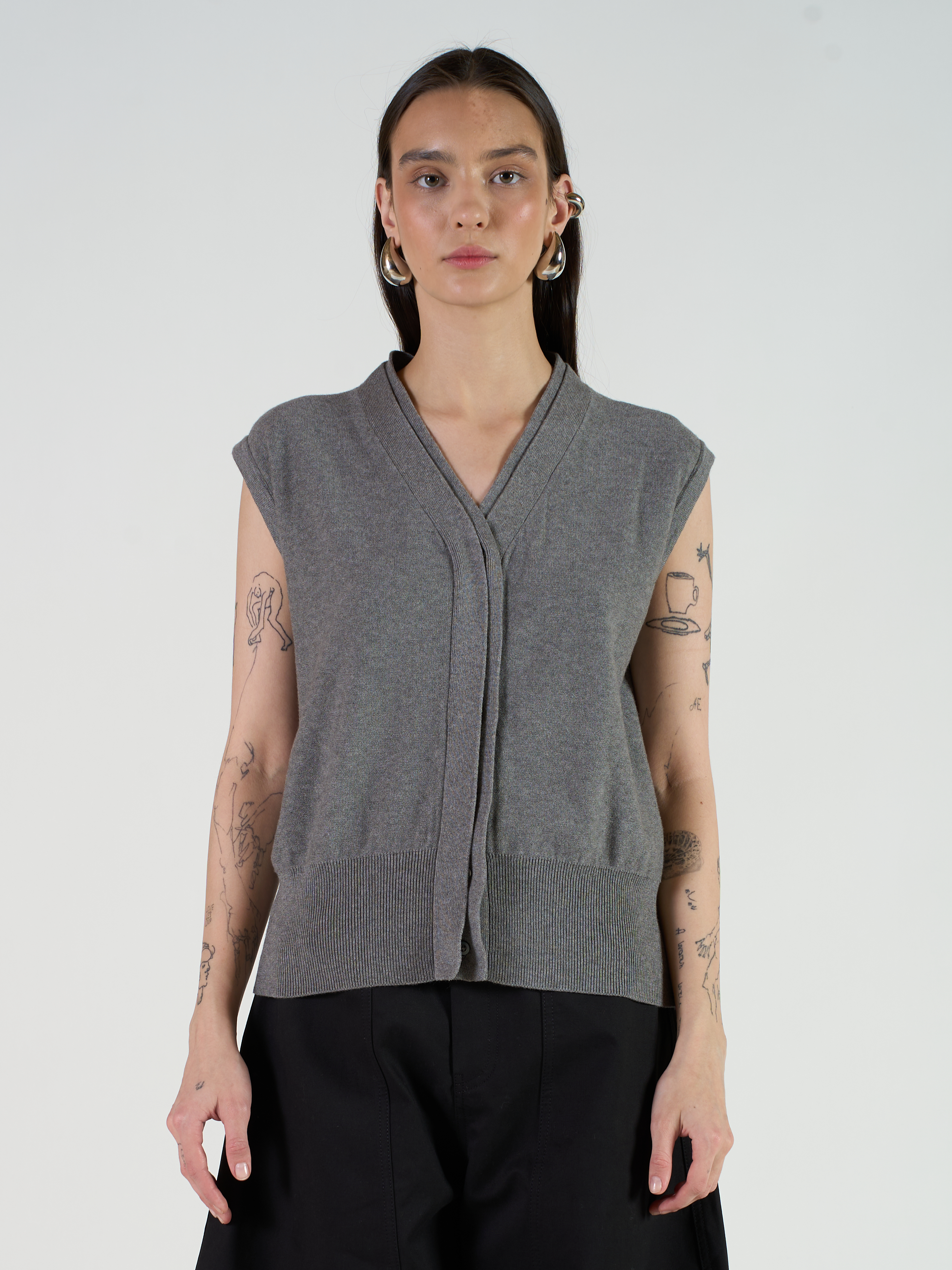 Жилет Overlay свободного кроя, с эффектом второго слоя и V-образным вырезом. Изделие выполнено из хлопковой нити с добавлением кашемира. Застегивается на пуговицы. Параметры модели Рост: 173 см Грудь - 80 см, талия - 62 см, бедра - 90 см Размер на модели: ONE SIZE