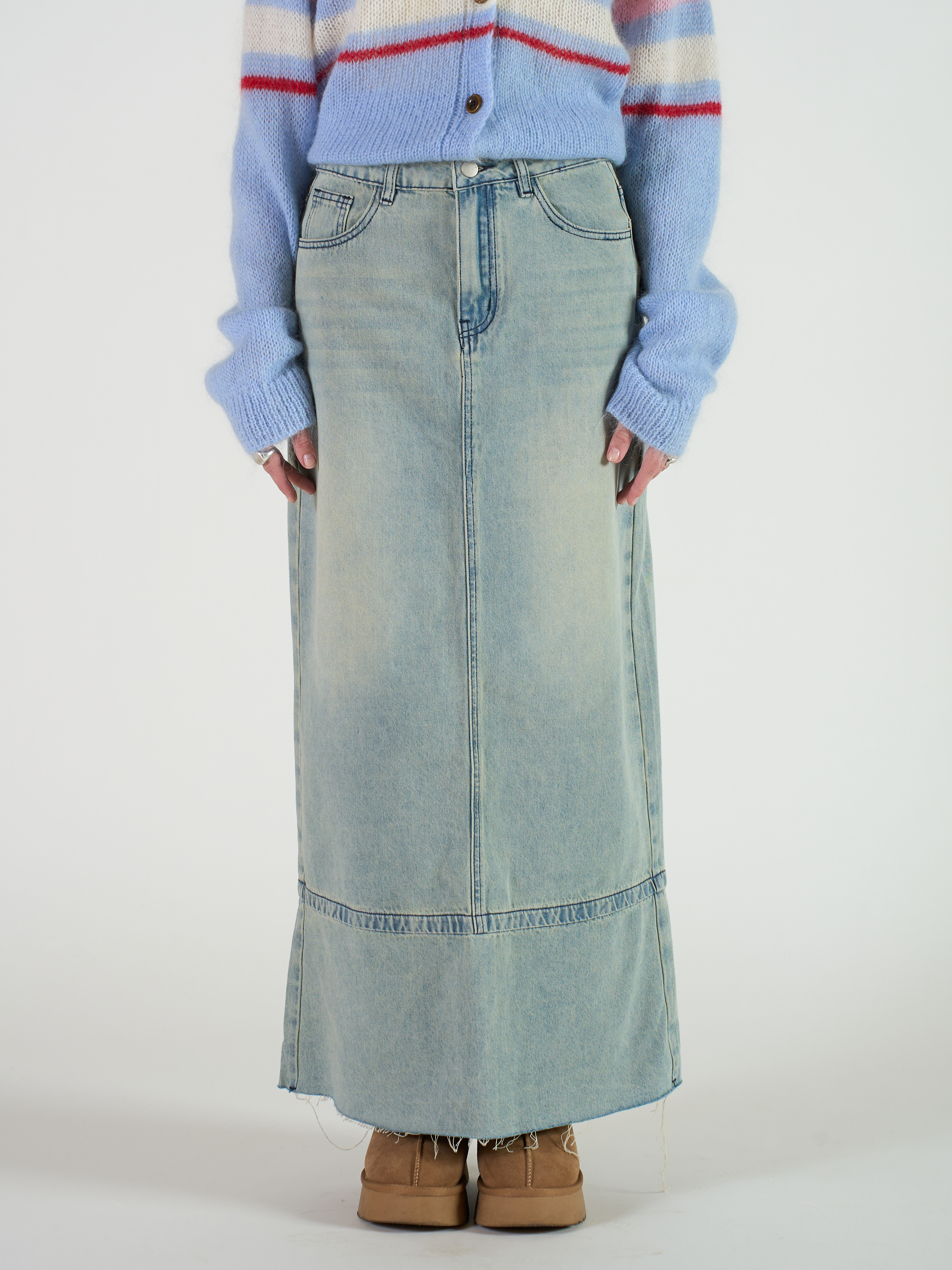 Джинсовая юбка макси. Выполнена из мягкой и эластичной джинсы, с необработанным нижнем краем и с центральным разрезом на задней стороне. Спереди присутствуют два передних кормана и два задних. К этой юбке также можно подобрать джинсовую рубашку в стиле анорак, изделия выполнены из одной джинсовой ткани. Параметры модели: Рост: 169 Грудь – 92 см, талия – 72 см, бедра – 86 см Размер на модели: S
