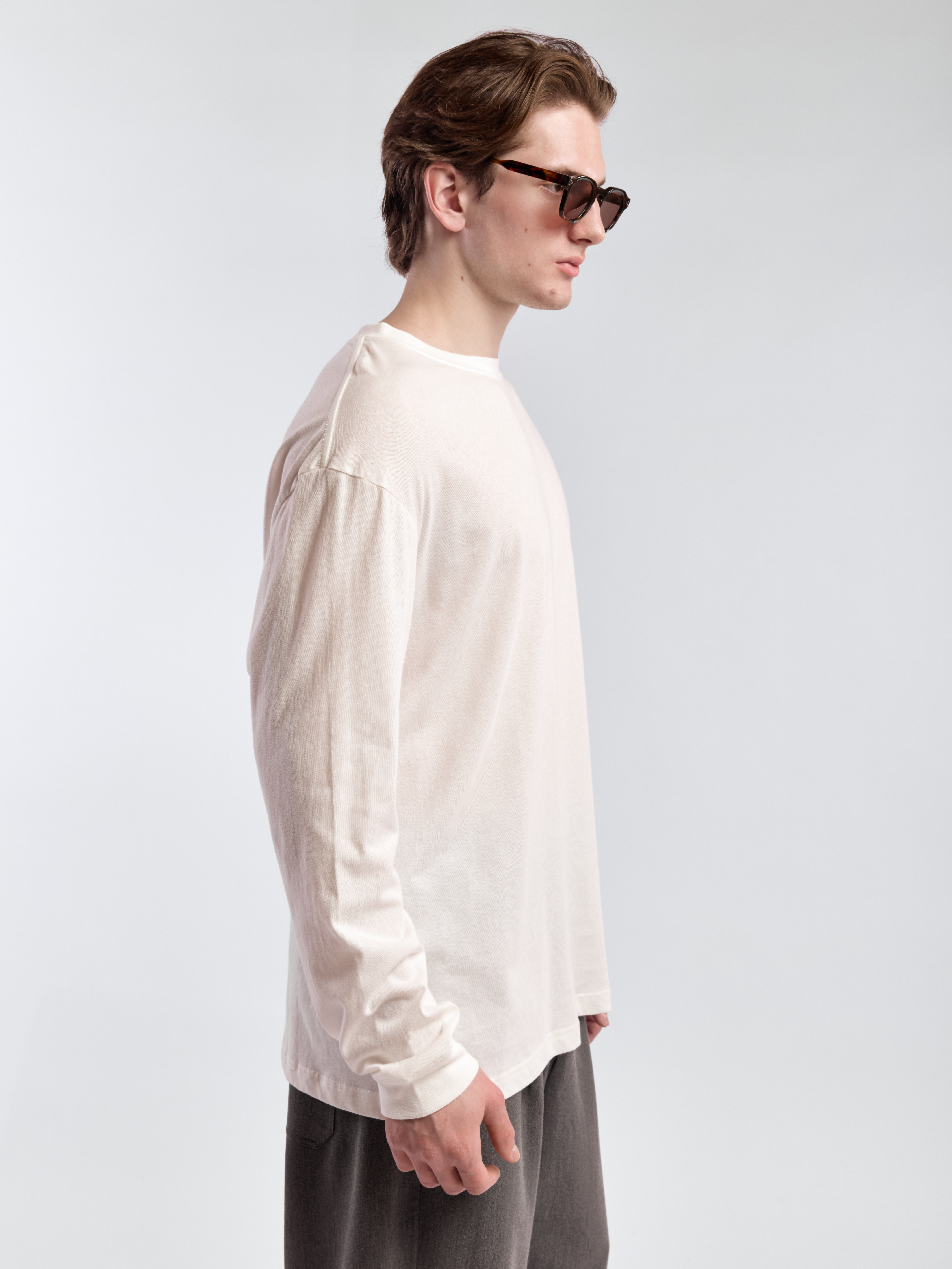Лонгслив свободного кроя, с манжетами на рукавах. Изделие выполнено из нежной и тонкой смесовой ткани. Присутствует эффект полупрозрачности. Параметры модели Рост: 188 см Грудь – 105 см, талия - 70 см, бедра - 93 см Размер на модели: L