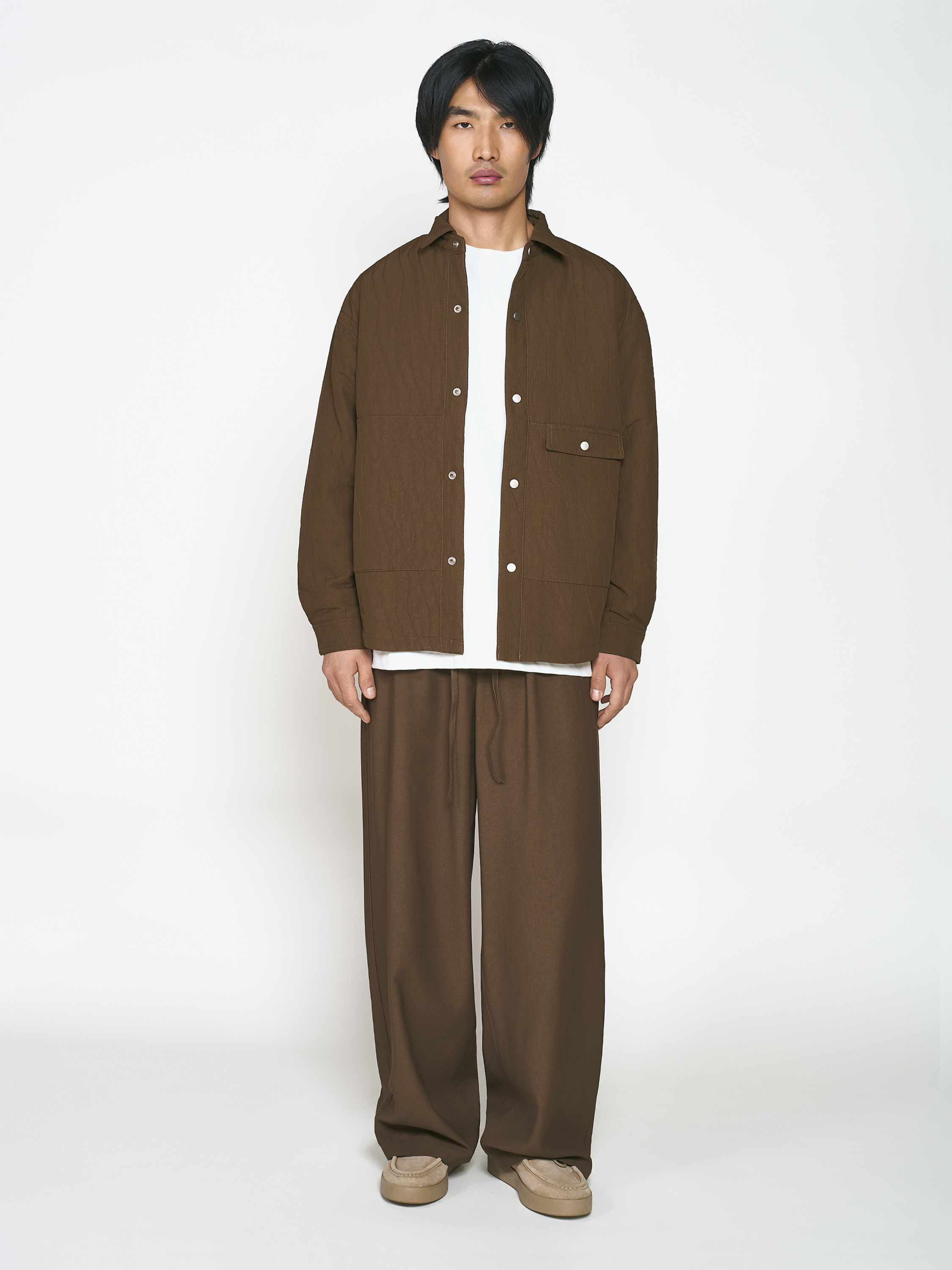 Брюки свободного кроя, прямого силуэта. Модель выполнена из легкой струящейся ткани. Два боковых прорезных кармана и два задних с клапанами.