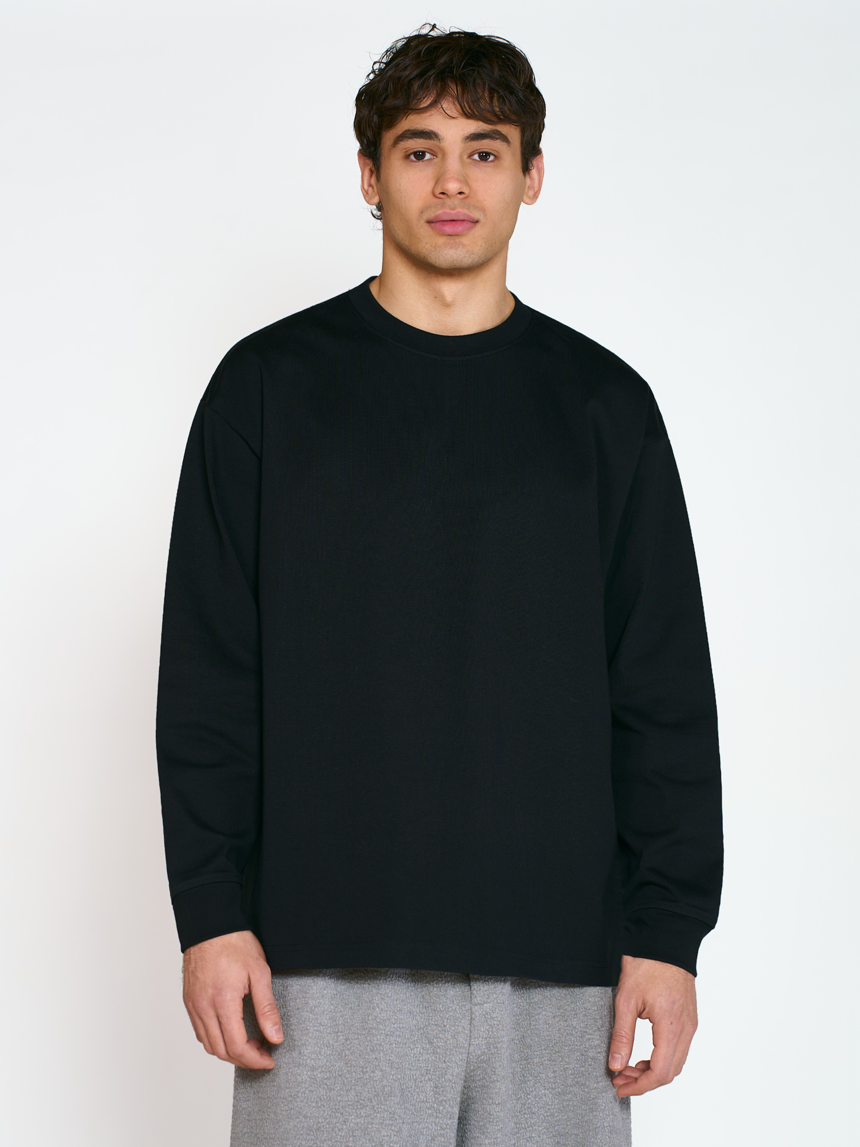Лонгслив Vestro оверсайз кроя, с приспущенной линией плеча. Модель выполнена из плотной хлопковой ткани с гладкой фактурой. Рукава изделия оформлены манжетами на резинке. Параметры модели Рост: 188 см Грудь – 105 см, талия - 70 см, бедра - 93 см Размер на модели: L