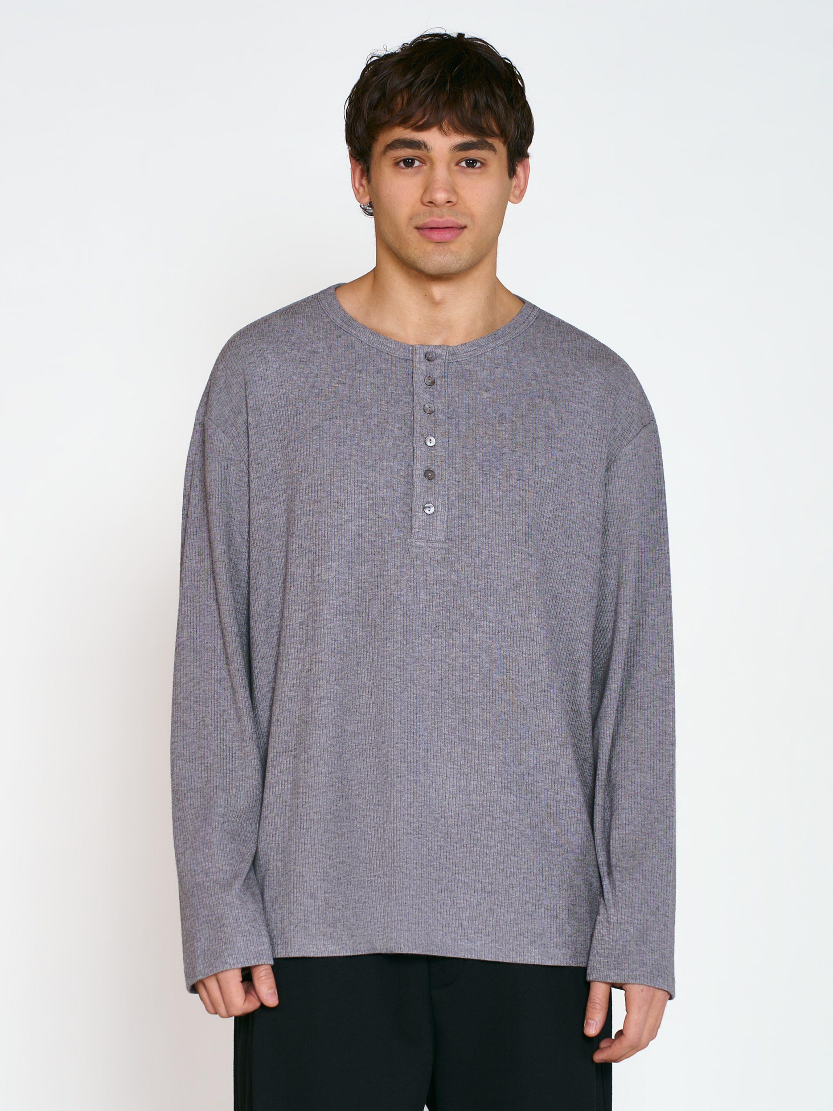 Лонгслив Aera оверсайз кроя, в расслабленном стиле, с пуговицами до середины груди. Модель выполнена из мягкой трикотажной ткани в рубчик, со струящимся эффектом. Параметры модели Рост: 188 см Грудь – 105 см, талия - 70 см, бедра - 93 см Размер на модели: L