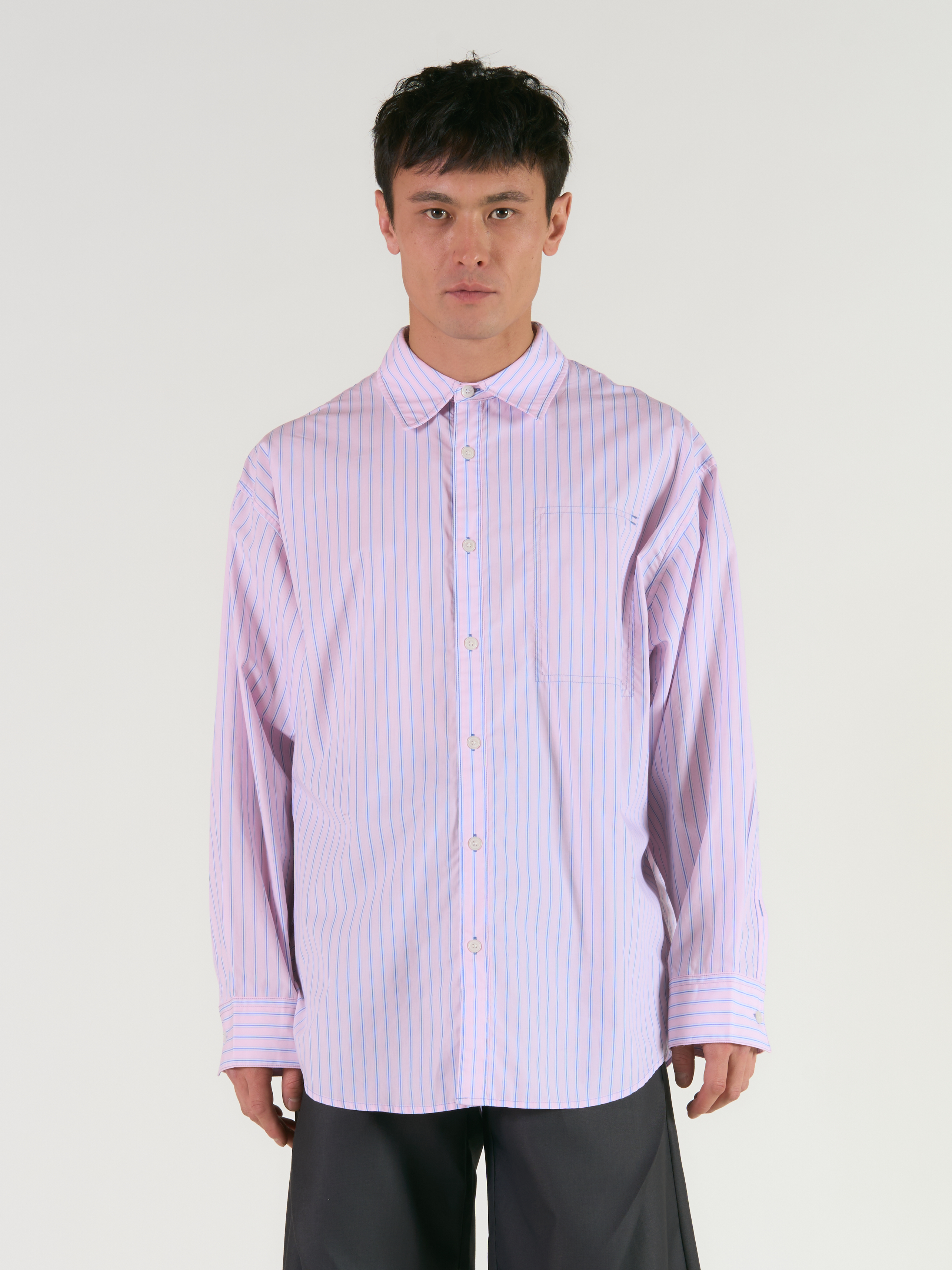 Рубашка Son оверсайз кроя, напоминающая пижаму не только внешне, но и тактильно. На передней части мы убрали привычный нагрудный карман, но оставили его очертание с помощью швов. Благодаря нейтральной полоске и расцветке, рубашка идеально подойдет под любой образ и станет отличным акцентом в нем. Параметры модели Рост: 175 см Грудь - 91 см, талия - 72 см, бедра - 89 см Размер на модели: L