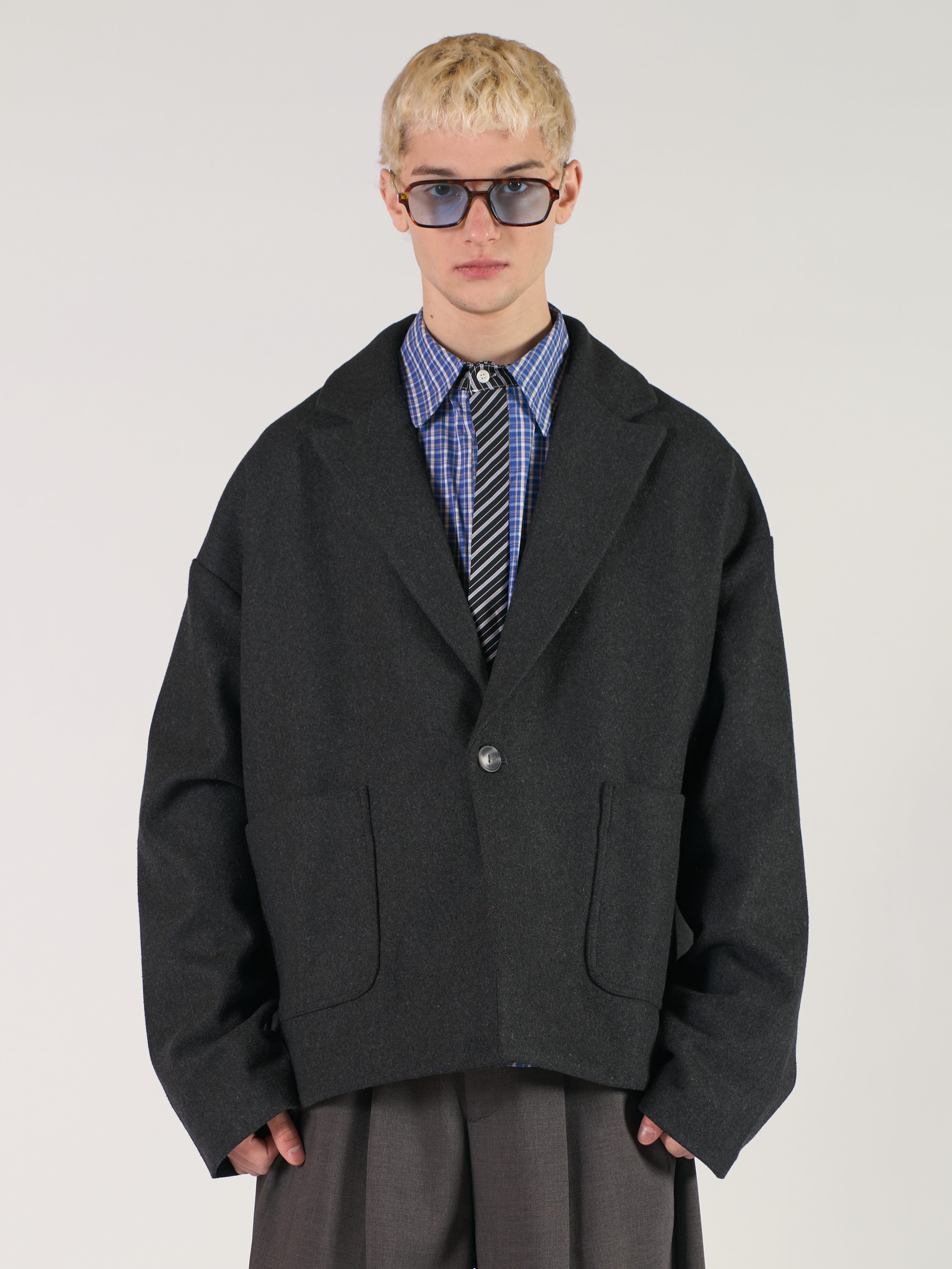 Пиджак Relax Fit оверсайз ассиметричного кроя. Пиджак можно использовать как верхнюю одежду, надев с теплым свитером, или использовать многослойность. Он отлично сочетается с различными стилистическими направлениями, поэтому можно интегрировать в любой гардероб. Модель выполнена из шерстяной ткани средней плотности, поэтому хорошо де ржит свою форму. На передней части расположены два накладных кармана. Застегивается на одну пуговицу. Параметры модели Рост: 180 см Грудь – 94 см, талия - 72 см, бедра - 91 см Размер на модели: М