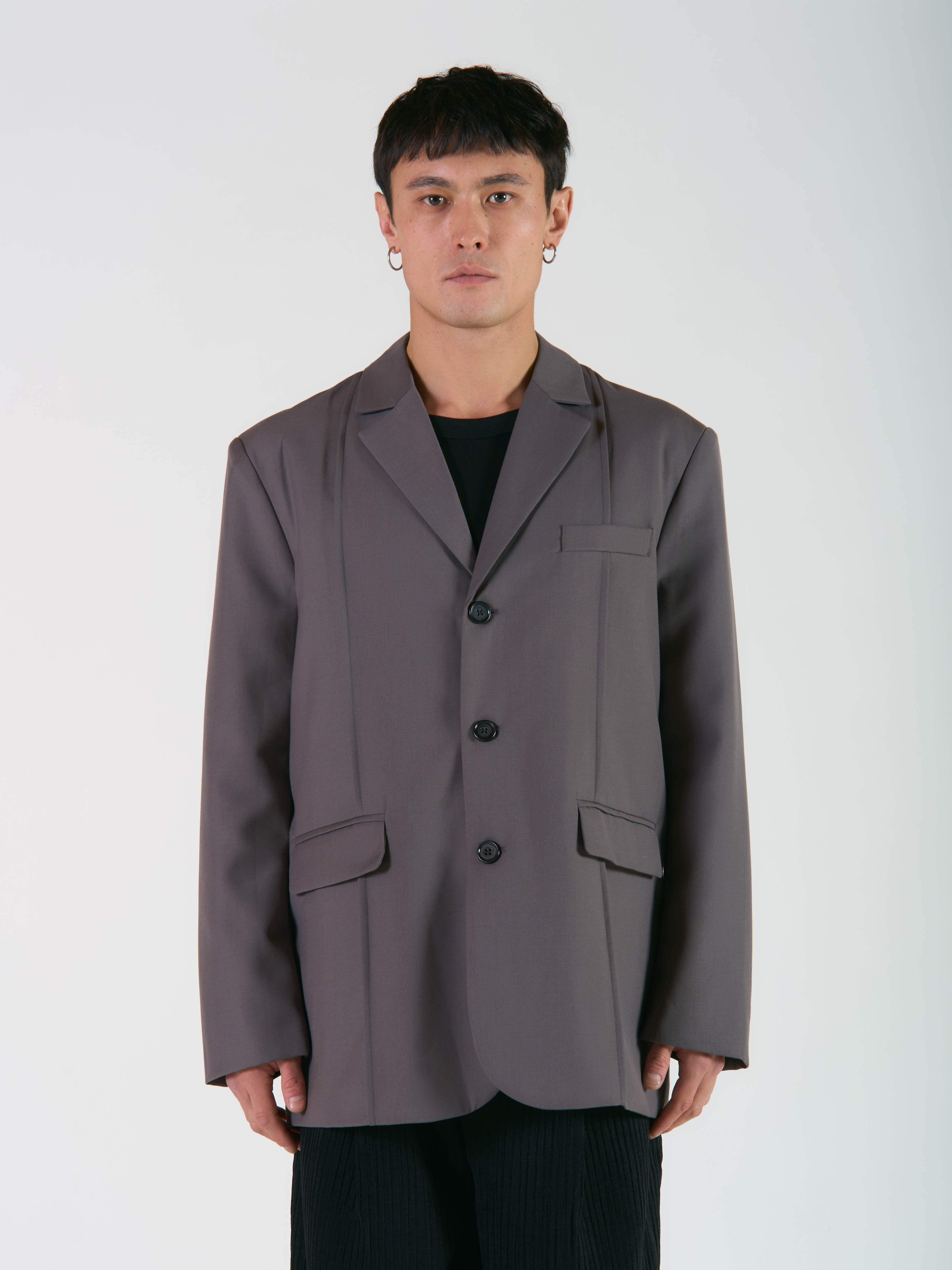 Пиджак Parallel свободного кроя, из гладкой костюмной ткани. На передней части изделия присутствуют две декоративные складки, два прорезных кармана и один нефункциональный нагрудный кармашек. Застегивается на три передних пуговицы. Одна из особенностей пиджака — это дополнительные защипы на спинке для создания небольшого объема и геометрии. Задняя часть выполнена без шлица. Параметры модели Рост: 175 см Грудь - 91 см, талия - 72 см, бедра - 89 см Размер на модели: M