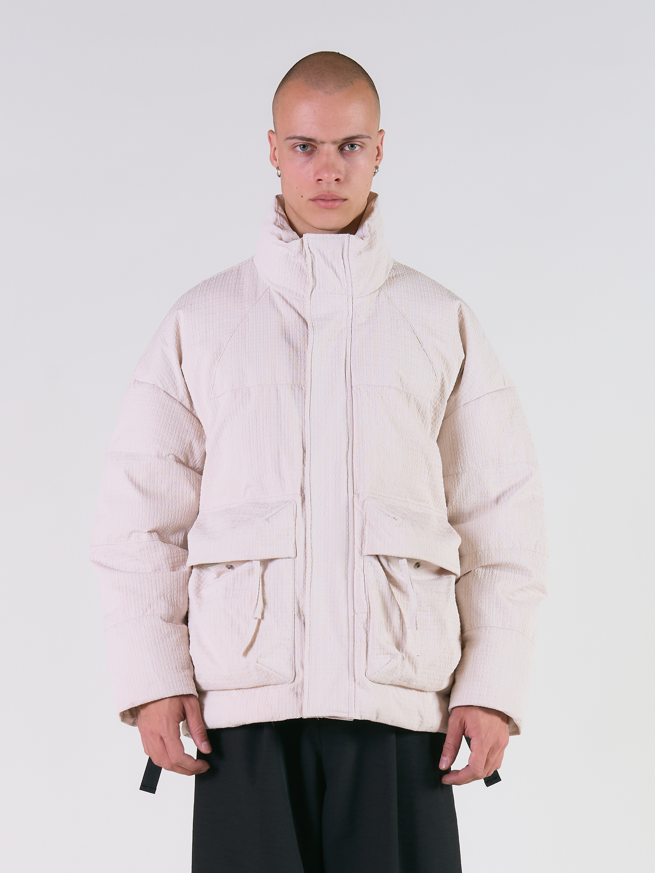Куртка wafer демисезонная, выполнена из плащевой фактурной ткани. На передней части два накладных кармана на молнии и металлических кнопках и один внутренний. Нижняя часть утягивается с помощью внутренней резинки с кулисками, а также на боковых частях есть утягивающие ленты с застёжкой. Ворот стойка защищает от ветра, а на рукавах присутствуют манжеты, которые плотно прилегают к телу. За счет наполнителя из белого утиного пуха, изделие получилось легким и теплым. Можно носить до -15 градусов с теплым свитером.