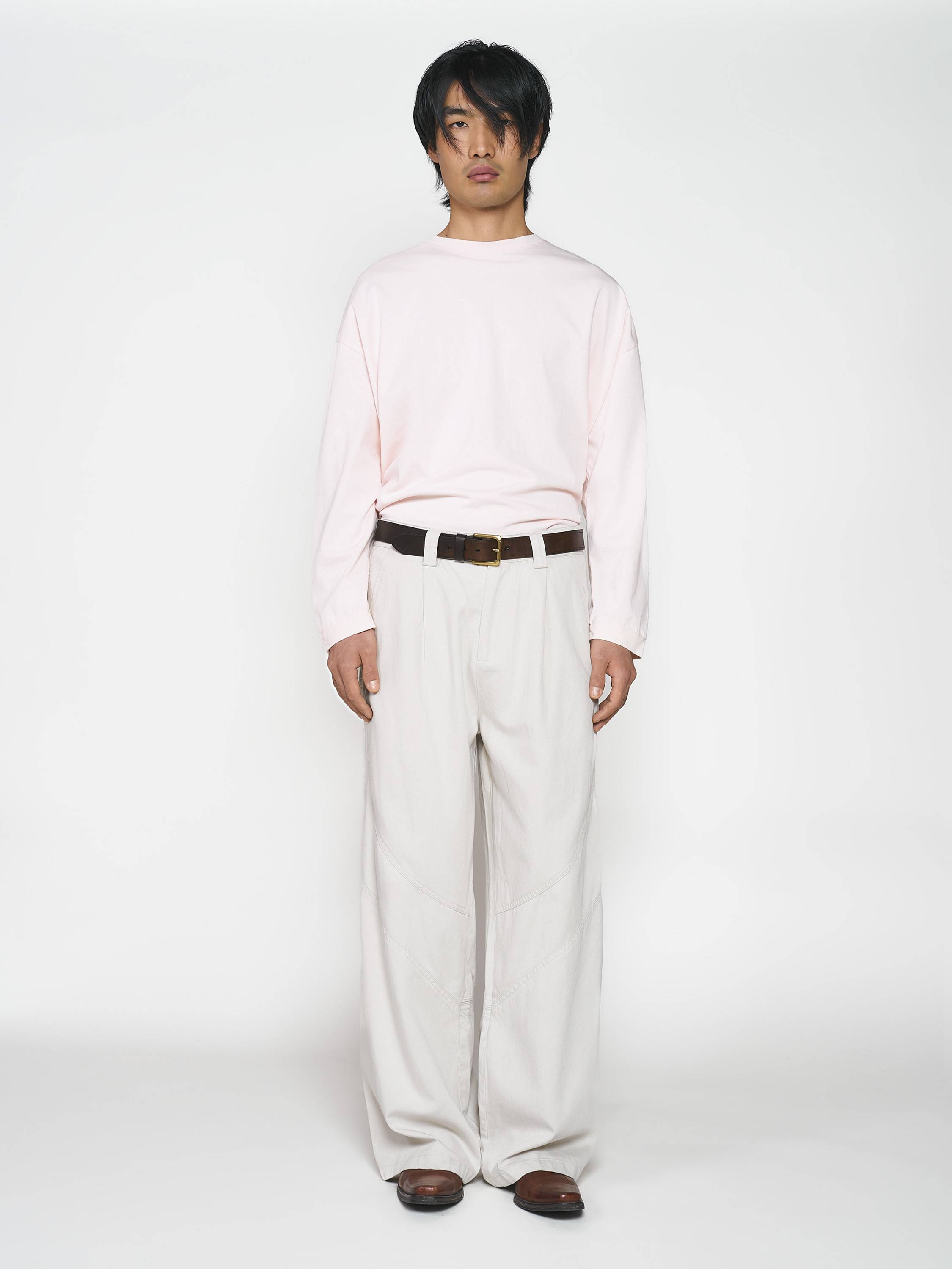 Брюки прямого кроя с акцентными швами на передней части. Модель выполнена из смесовой ткани, похожей на тонкую джинсу. Два боковых прорезных кармана и один задний. Пояс со шлевками для ремня, застегивается на пуговицу и молнию. Параметры модели Рост: 185 см Грудь – 94 см, талия - 71 см, бедра - 94 см Размер на модели: L