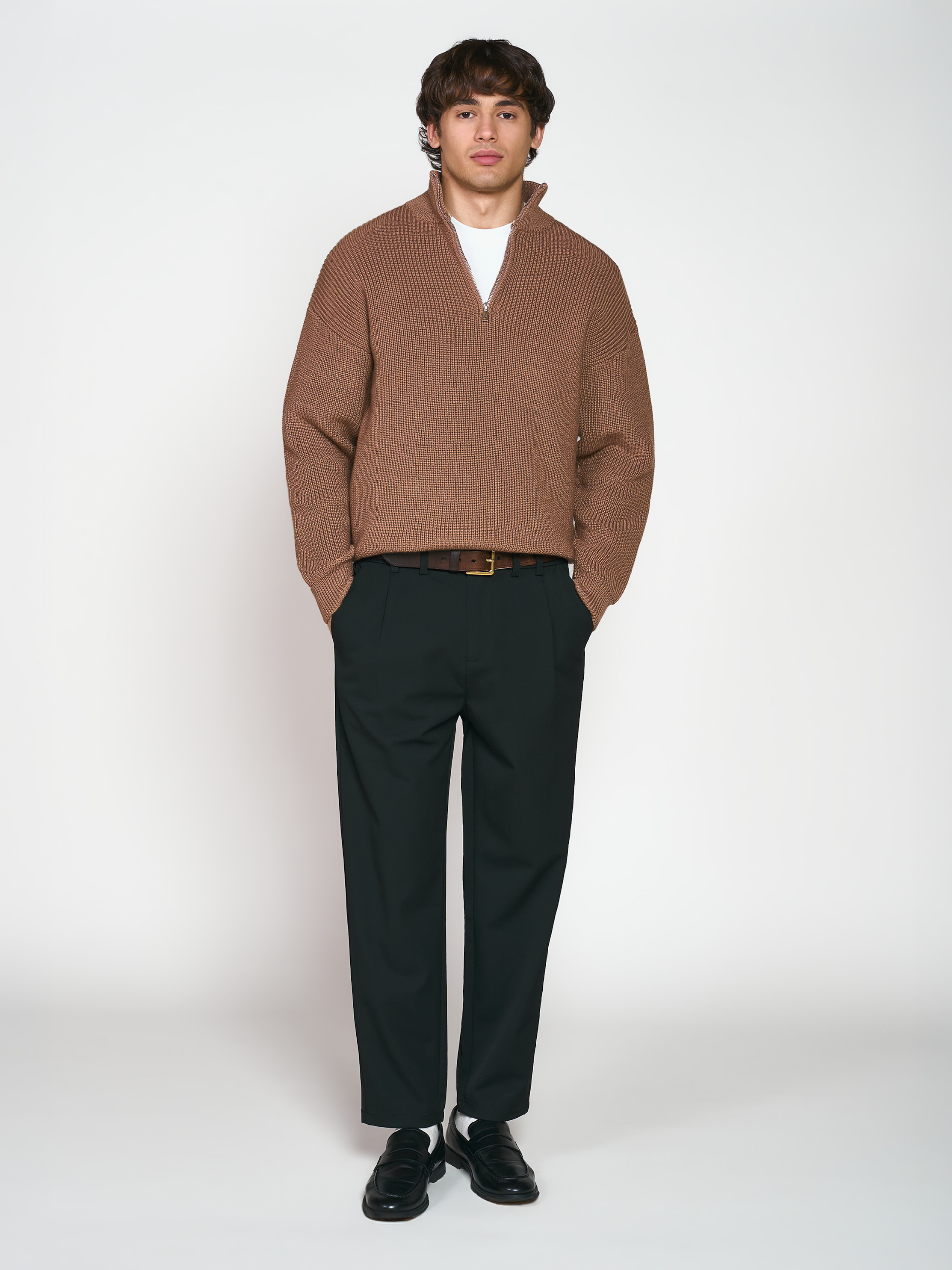 Брюки классического кроя, зауженные к низу, с защипами. Модель выполнена из плотной смесовой костюмной ткани. Пояс со шлевками для ремня, застегивается на пуговицу и молнию. Два боковых прорезных кармана и два задних. Параметры модели Рост: 188 см Грудь – 105 см, талия - 70 см, бедра - 93 см Размер на модели: ХL