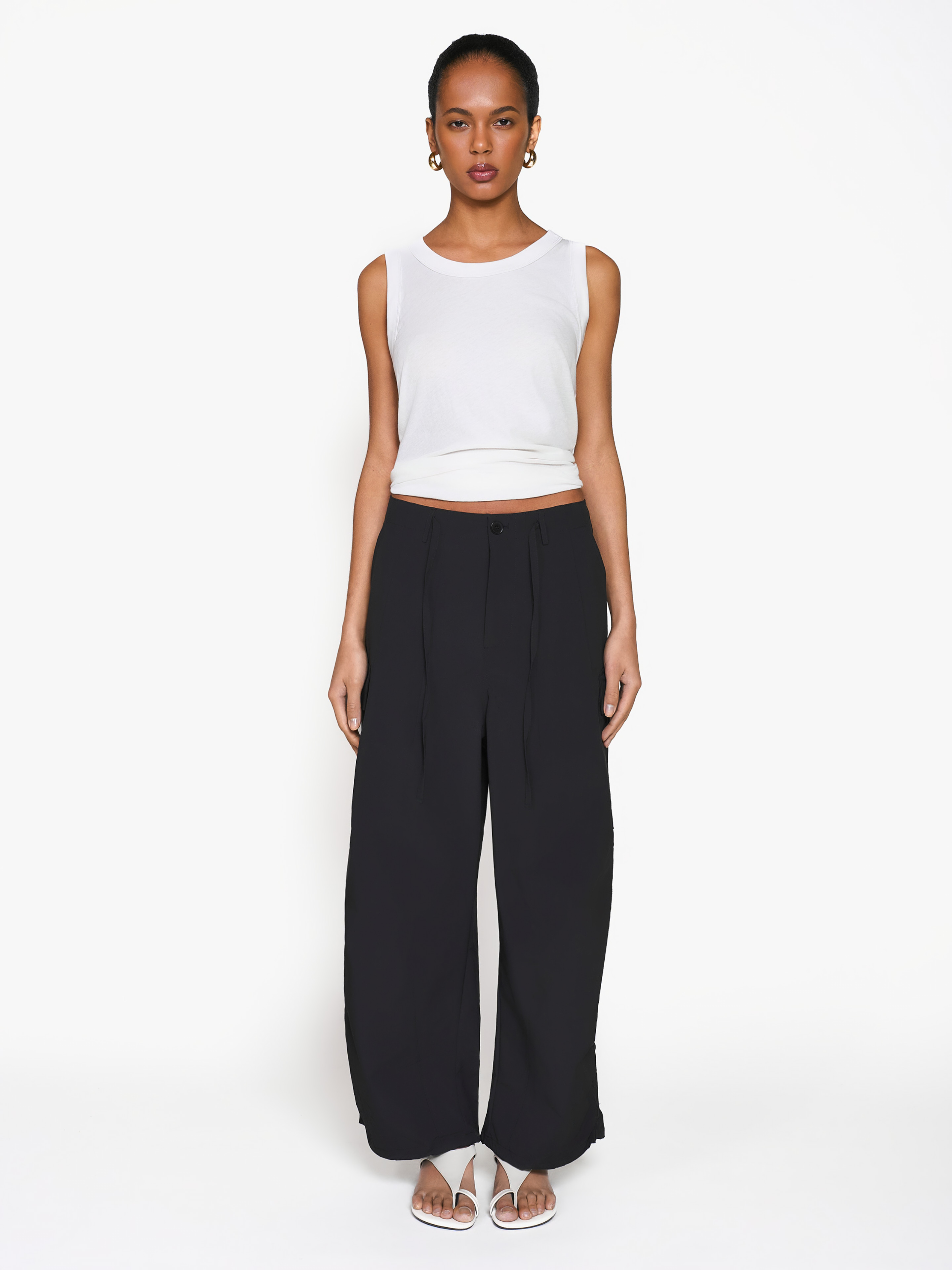 Брюки карго свободного кроя. Модель выполнена из мягкой плащевой ткани. Два боковых прорезных кармана и два накладных с клапаном. Застегивается на пуговицу и молнию, также пояс регулируется кулисками. Параметры модели Парень: Рост: 189 см Грудь – 93 см, талия - 70 см, бедра - 88 см Размер на модели: М Девушка: Рост: 175 см Грудь - 80 см, талия - 61 см, бедра - 88 см Размер на модели: S