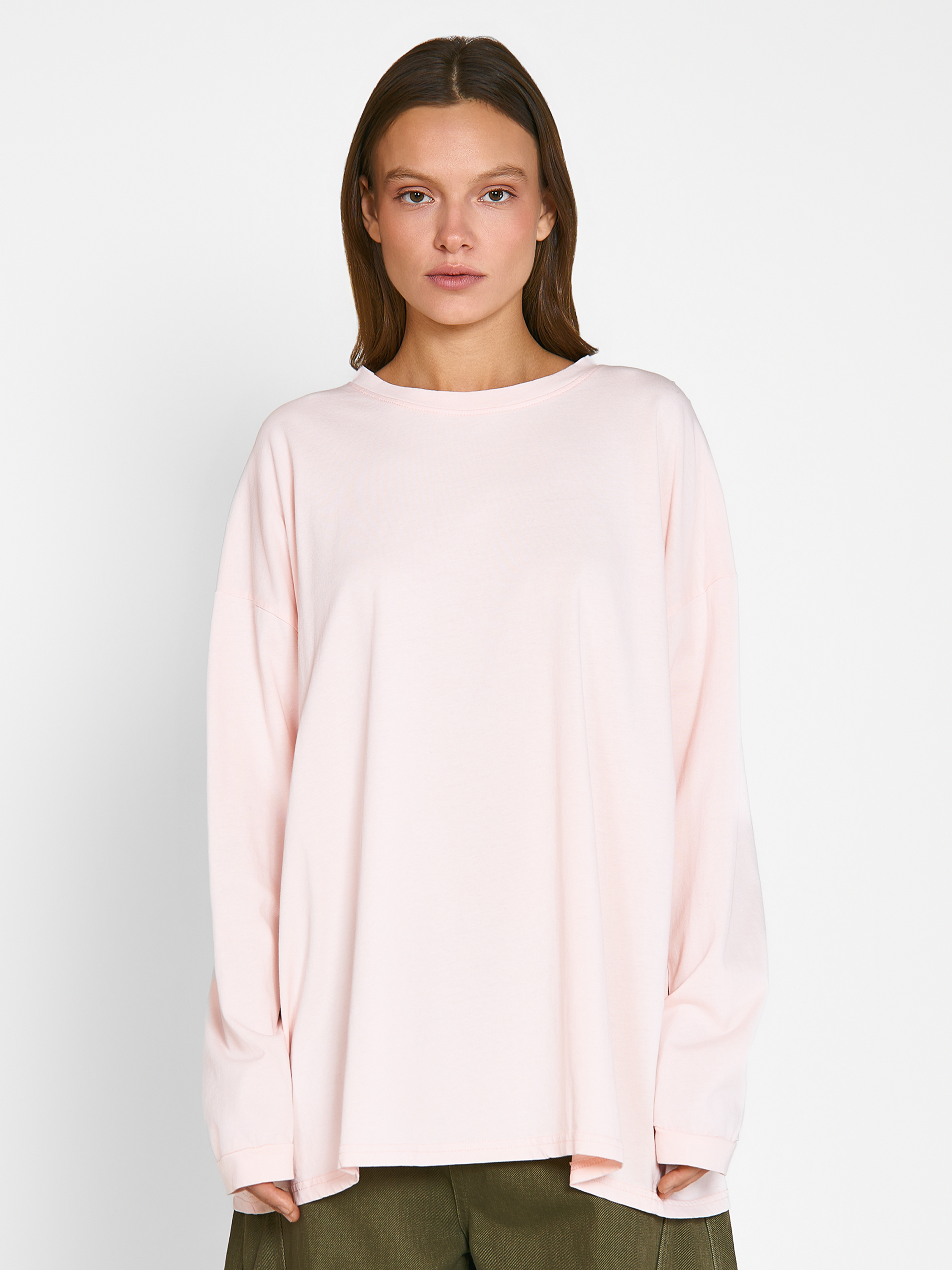Лонгслив Shi оверсайз кроя, с широкими манжетами на рукавах. Модель выполнена из струящейся хлопковой ткани средней плотности. Параметры модели Рост: 170 см Грудь - 80 см, талия - 60 см, бедра - 89 см Размер на модели: ONE SIZE
