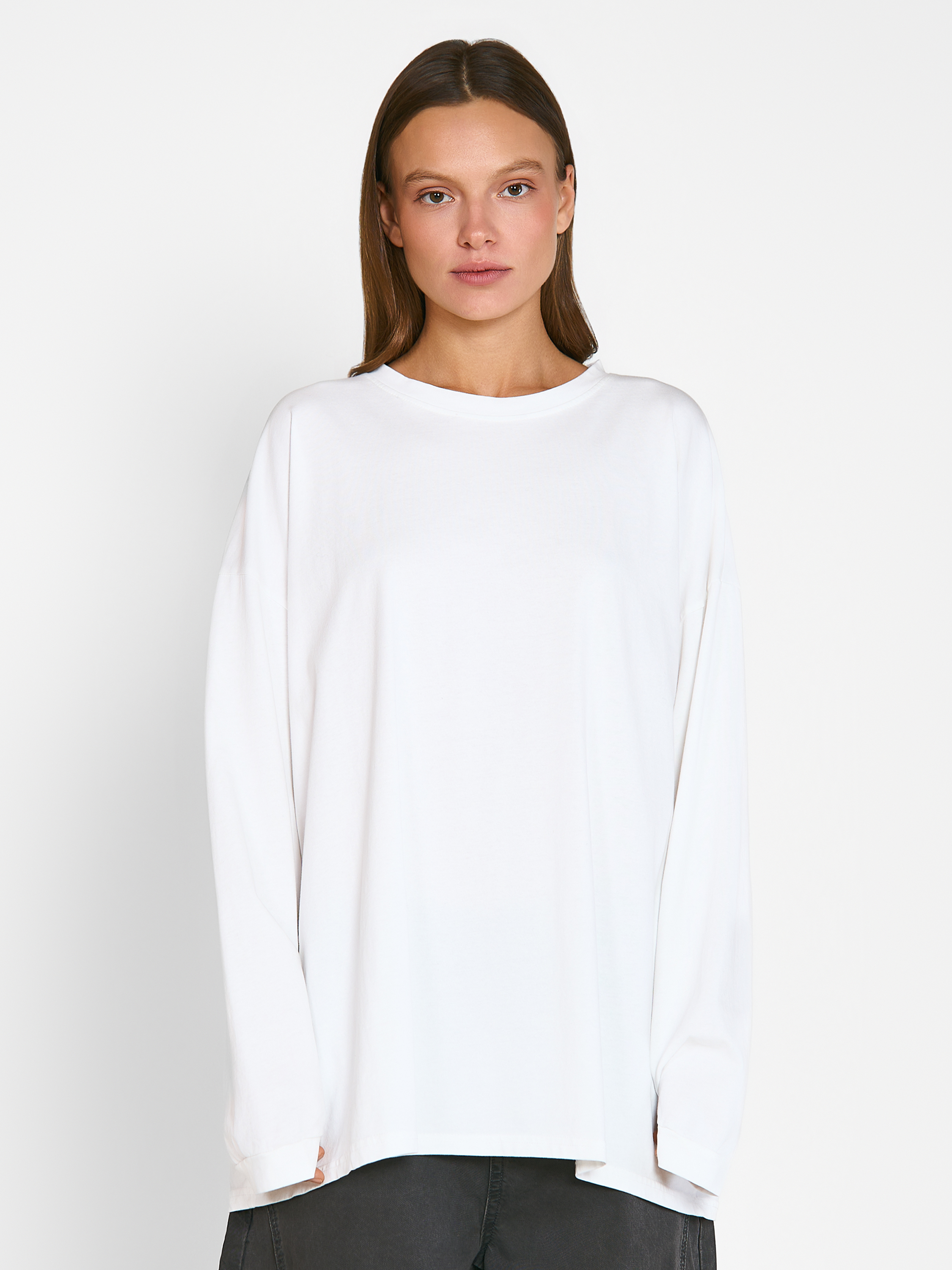 Лонгслив Shi оверсайз кроя, с широкими манжетами на рукавах. Модель выполнена из струящейся хлопковой ткани средней плотности. Параметры модели Рост: 170 см Грудь - 80 см, талия - 60 см, бедра - 89 см Размер на модели: ONE SIZE