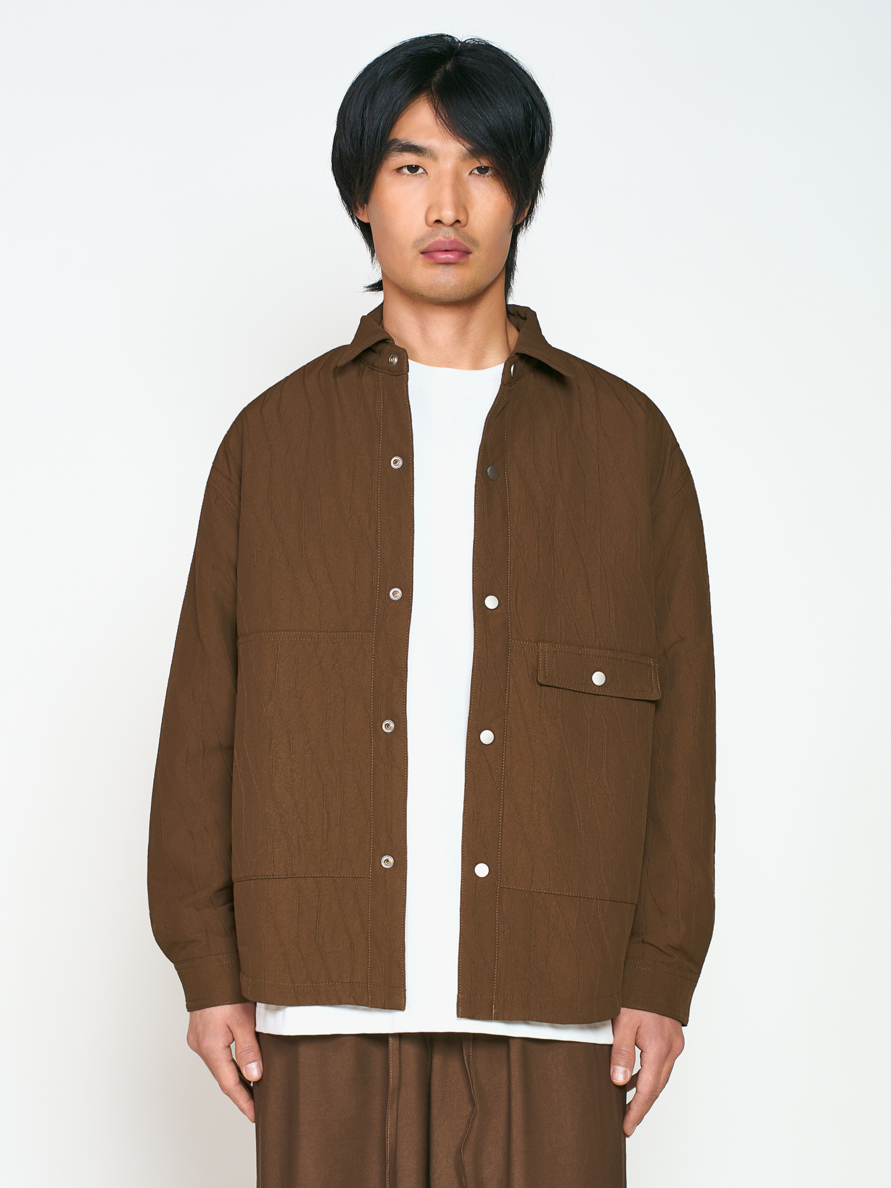 Свободная куртка-рубашка Dry Clay из фактурной ткани с подкладом, напоминающая потрескавшуюся глину. На передней части два боковых прорезных кармана и один декоративный, один внутренний. Застегивается на металлические кнопки. Пара метры модели: Рост: 175 см Грудь - 91 см, талия - 72 см, бедра - 89 см Размер на модели: L