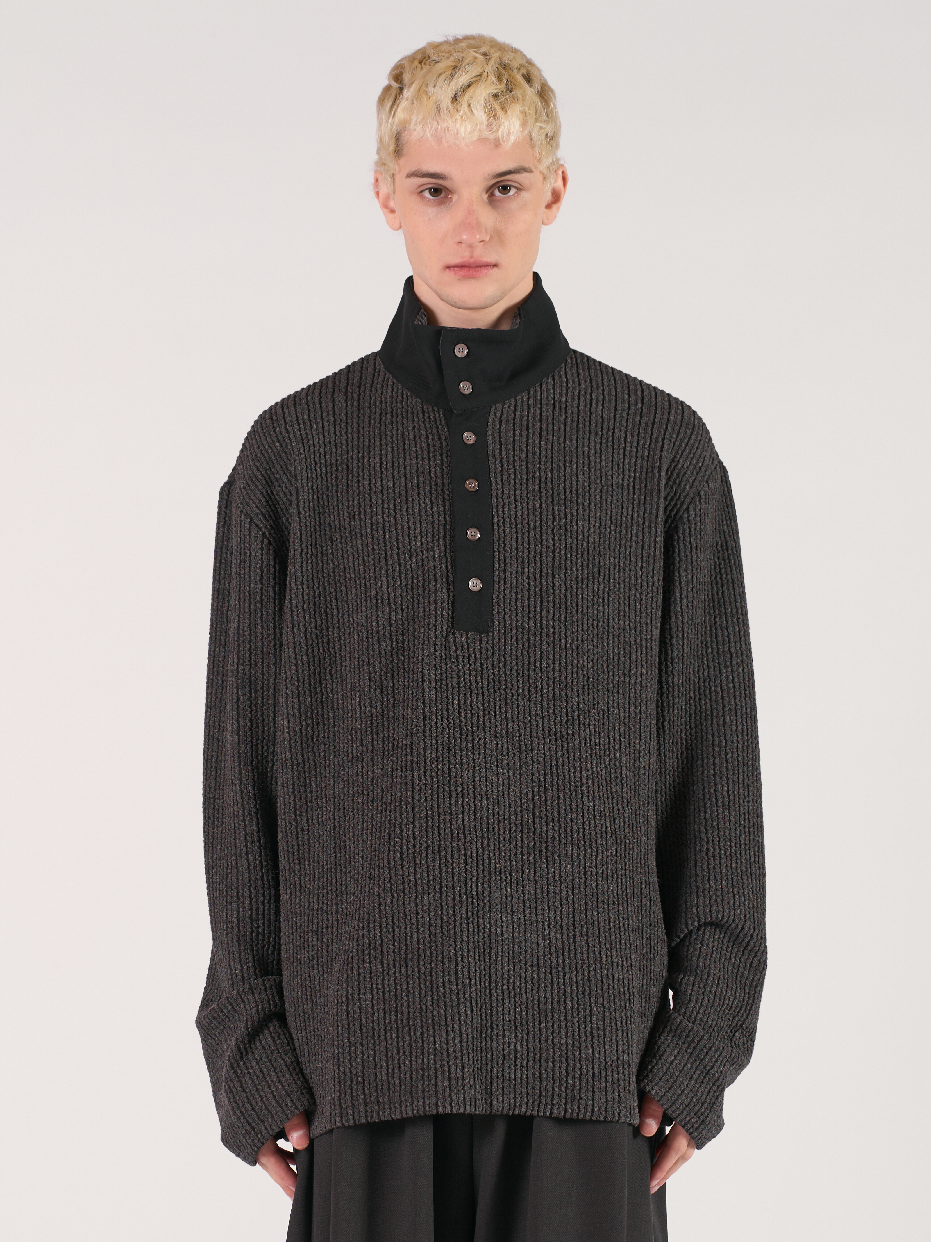 Лонгслив Vertical оверсайз кроя, прямого силуэта. Наша модель обладает универсальностью благодаря воротнику-стойке, который застегивается на пуговицы. Такой ворот можно носить как в поднятом состоянии, так и расстегнув наполовину (или полностью) и подвернув его, создав иллюзию рубашки. Также лонгслив отлично сочетается со строгой классикой, спортивными брюками и джинсами. Изделие выполнено из мягкой трикотажной ткани с фактурой крупной вязки. Параметры модели Рост: 180 см Грудь – 94 см, талия - 72 см, бедра - 91 см Размер на модели: L