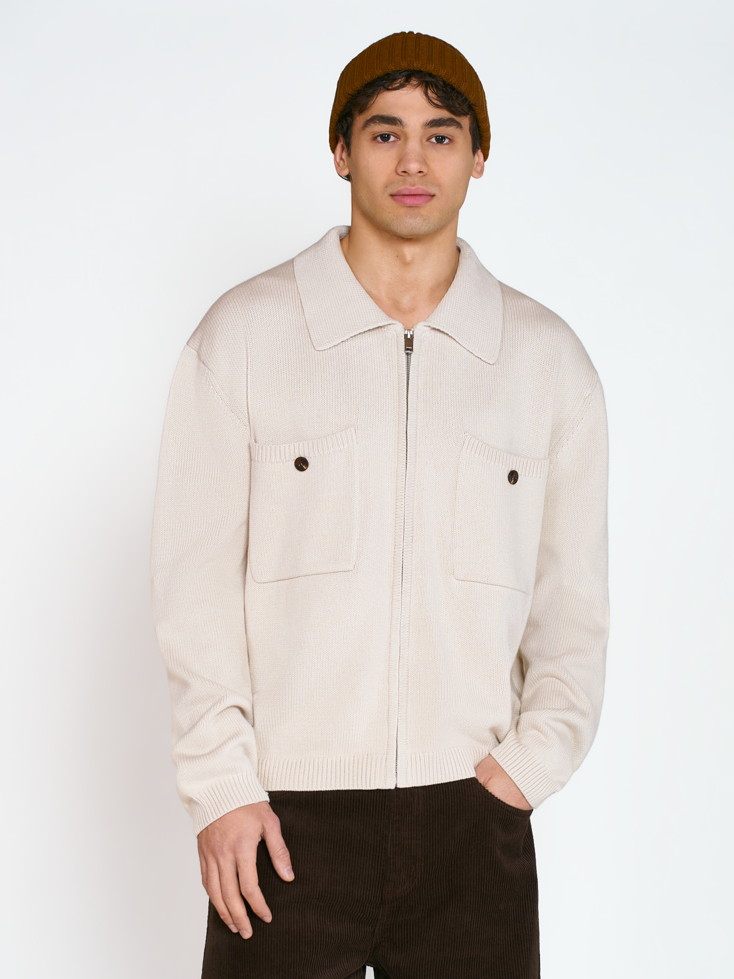 Джемпер Sawa оверсайз кроя, со спущенной линией плеча и отложным воротником. На передней части расположено два нагрудных кармана с контрастными пуговицами. Застегивается на скрытую молнию. Модель выполнена из 100% хлопка. Параметры модели Рост: 188 см Грудь – 105 см, талия - 70 см, бедра - 93 см Размер на модели: L