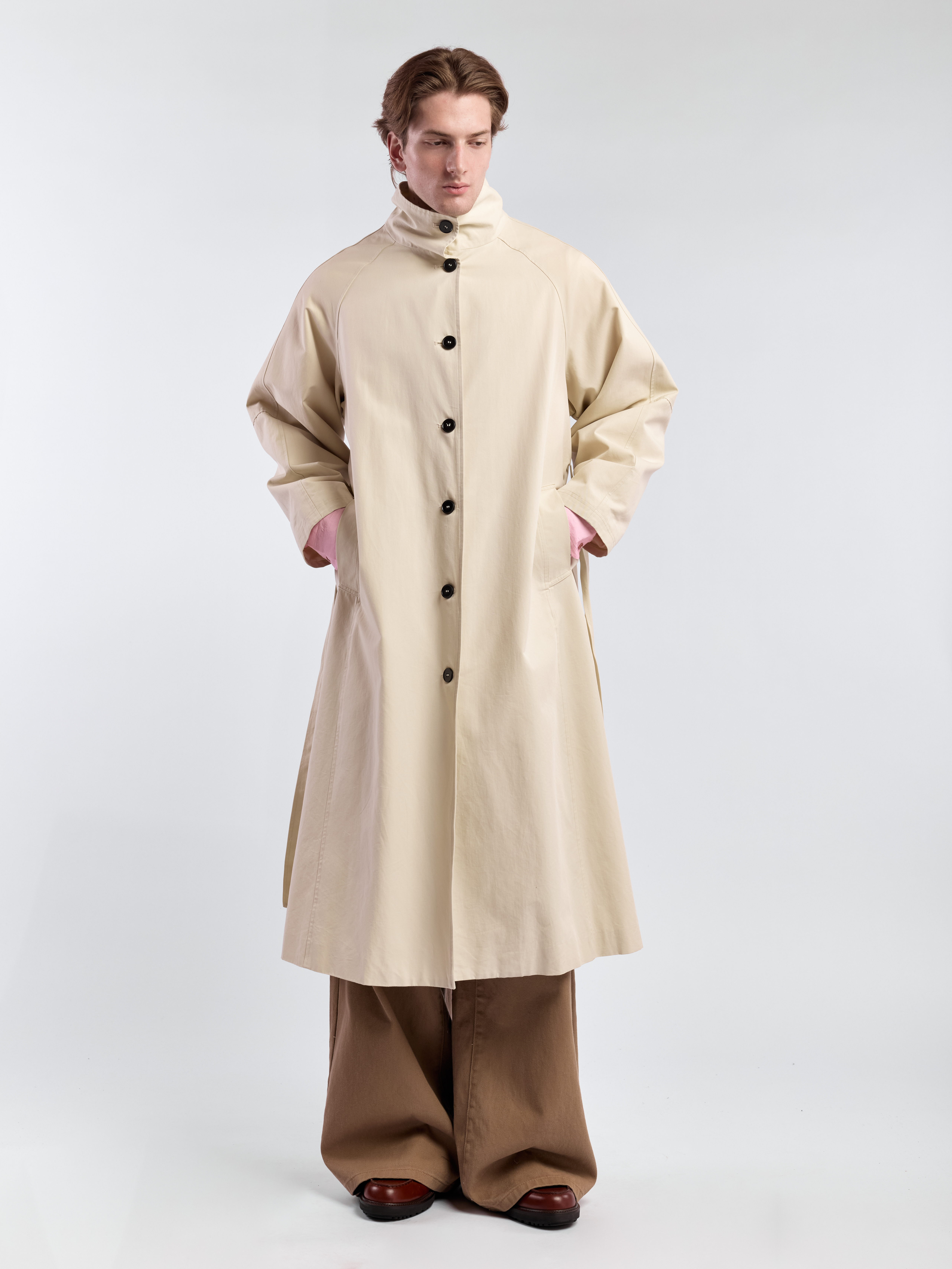 Плащ свободного кроя с поясом для создания приталенного силуэта. Минималистичный дизайн, разбавленный акцентными черными пуговицами. Плечо реглан и экстра широкие рукава создают дополнительный объем. Два боковых прорезных кармана. Параметры модели Девушка Рост: 175 см Грудь - 80 см, талия - 61 см, бедра - 88 см Размер на модели: ONE SIZE Парень Рост: 184 см Грудь - 105 см, талия - 72 см, бедра - 91 см Размер на модели: ONE SIZE