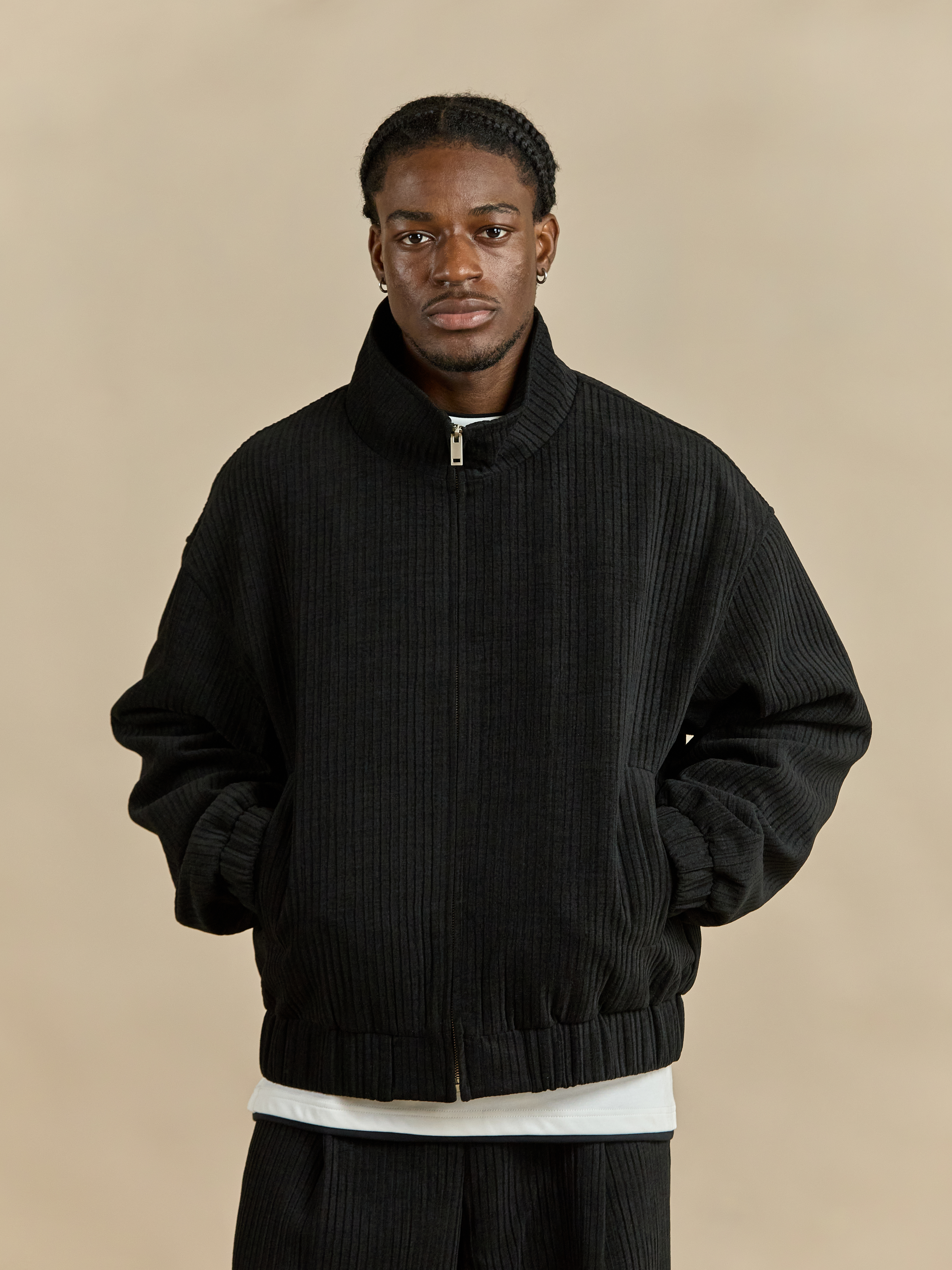 Куртка velvet из тонкого вельвета, с подкладом. Ворот стойка, скрытая молния по всей длине и два врезных передних кармана. Манжеты на рукавах и нижней части куртки, сделаны на резинке для плотного прилегания к телу. Параметры модели: Рост: 175 см Грудь - 91 см, талия - 72 см, бедра - 89 см Размер на модели: L