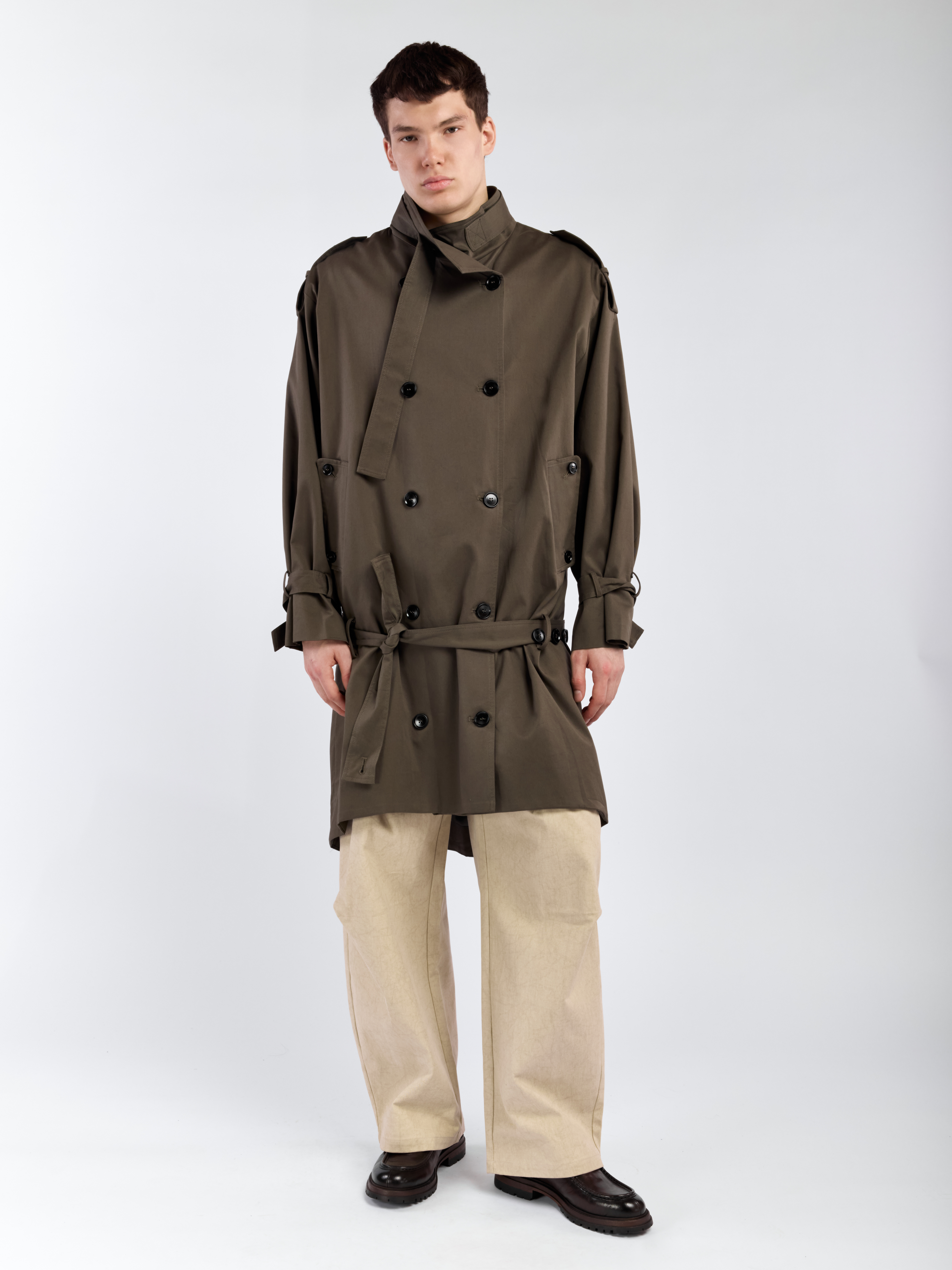 Асимметричный тренч с заниженным поясом, напоминающий нам японскую уличную моду. Главная особенность — крой и детали. На рукавах предусмотрены регулируемые хлястики, которыми можно уменьшить обхват и создать дополнительный объем. Пояс изделия с множеством пуговиц для придания формы, смещен к низу. Плащ можно застегнуть как на правую сторону, так и на левую. Ворот-стойка прошит ремешком для фиксации. Два боковых прорезных кармана с защитными клапанами. Параметры модели Девушка Рост: 175 см Грудь - 80 см, талия - 61 см, бедра - 88 см Размер на модели: XS Парень Рост: 180 см Грудь - 90 см, талия - 75 см, бедра - 87 см Размер на модели: S
