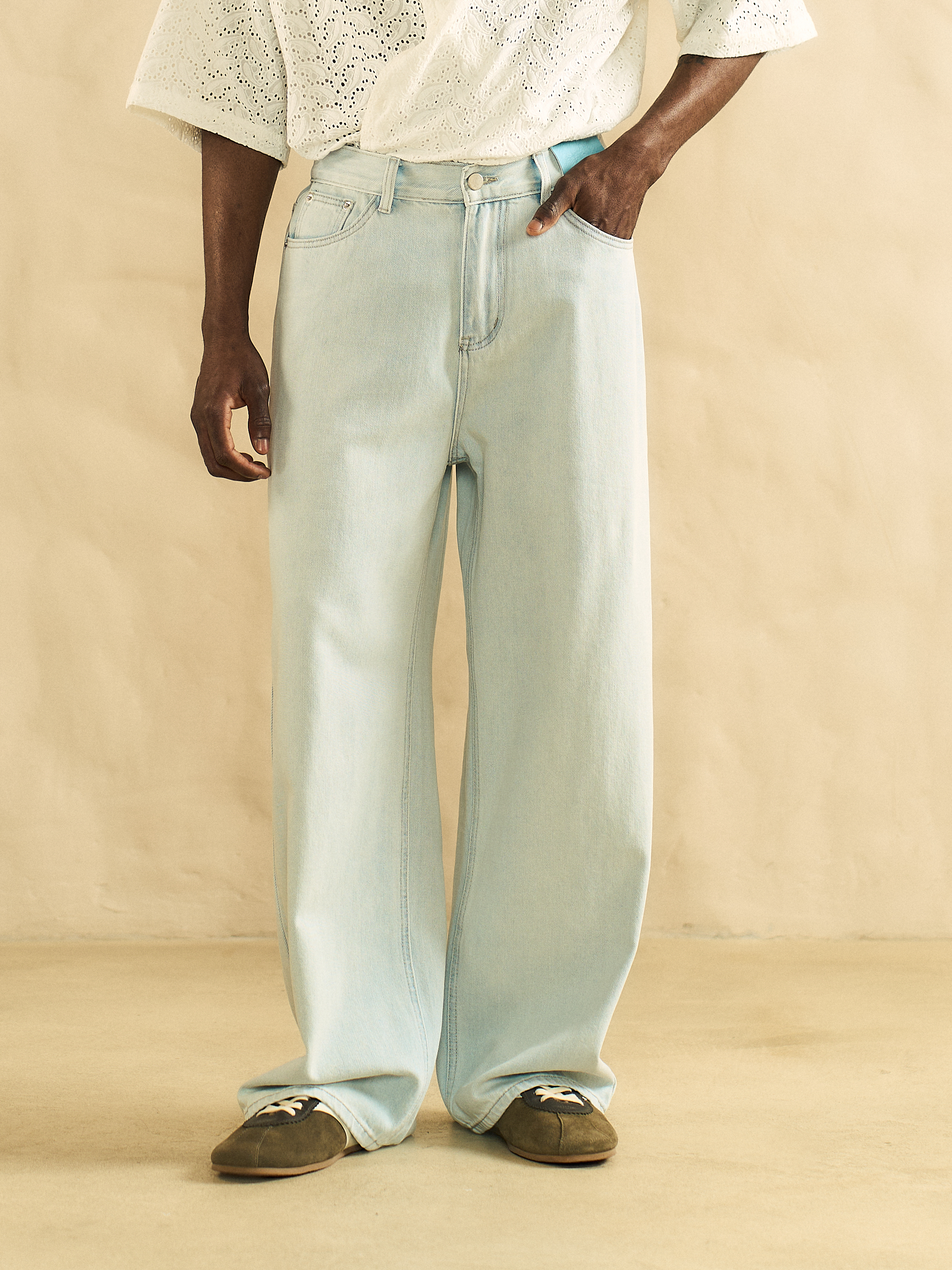 Джинсы Sky широкие, прямого кроя. Выполнены из денима средней плотности. Пояс изделия частично на резинке, со шлевками для ремня. Также на лицевой стороне есть акцентная нашивка. Три передних прорезных кармана и два задних накладных. Параметры модели: Рост: 175 см Грудь - 91 см, талия - 72 см, бедра - 89 см Размер на модели: L