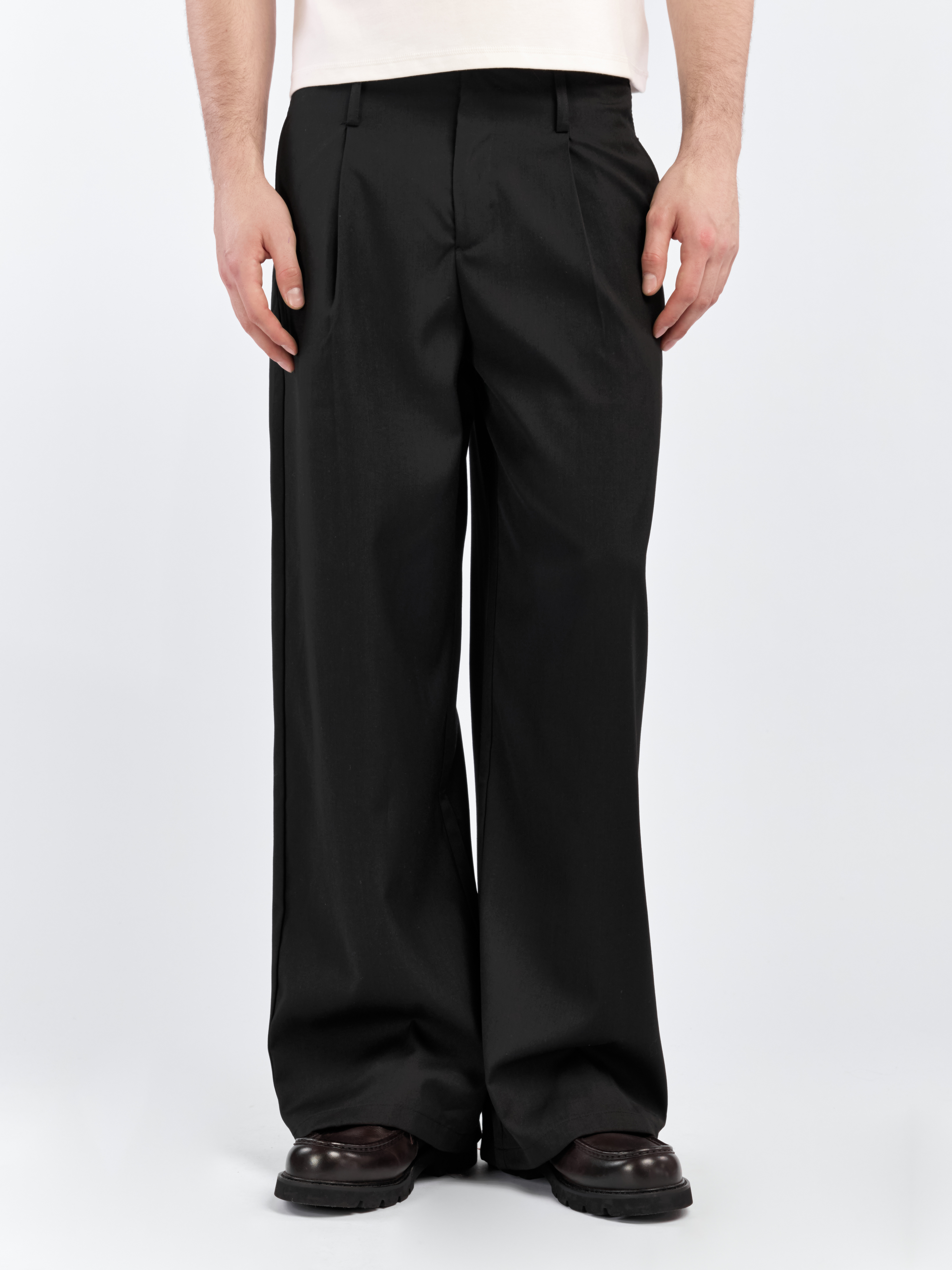 Брюки свободного кроя и прямого силуэта. Минималистичный дизайн и утонченность — это идеальное сочетание, которое мы старались отразить в нашем изделии. Главная особенность брюк — это построение лекала, где пояс интегрирован в основу. А безупречная посадка получилась благодаря выточкам. Модель выполнена из смесовой костюмной ткани. Два боковых прорезных кармана и два задних. Шлевки для ремня чуть приспущены от линии пояса. Для создания полноценного костюма можно приобрести двубортный пиджак с акцентными плечами и лацканами. Параметры модели Рост: 189 см Грудь – 99 см, талия - 82 см, бедра - 105 см Размер на модели: L
