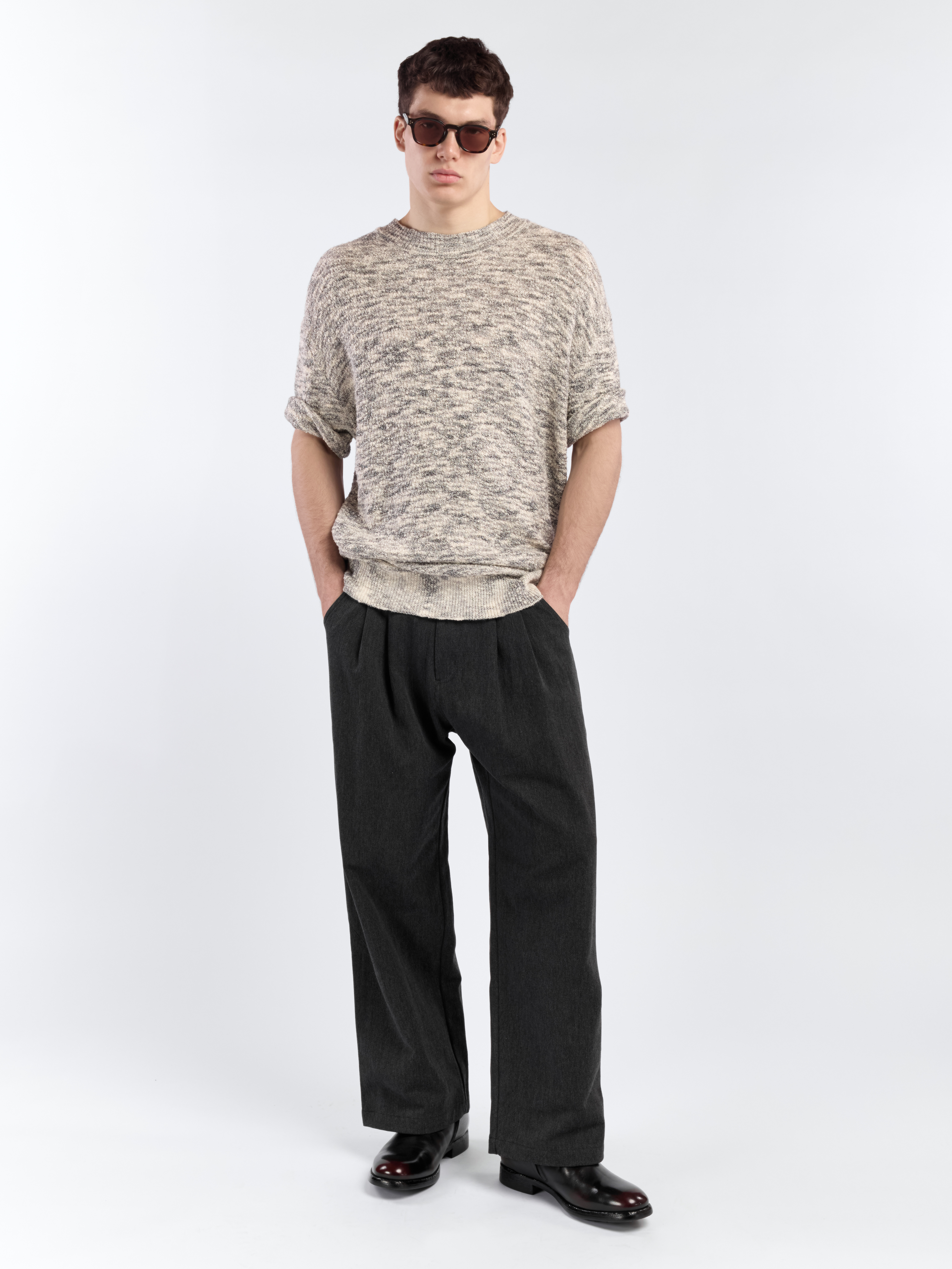 Джинсы с защипами свободного кроя и прямого силуэта, с акцентным патчем на поясе. Модель выполнена из джинсы средней плотности. Два боковых прорезных кармана и два задних накладных. Параметры модели Рост: 189 см Грудь – 103 см, талия - 79 см, бедра - 97 см Размер на модели: L