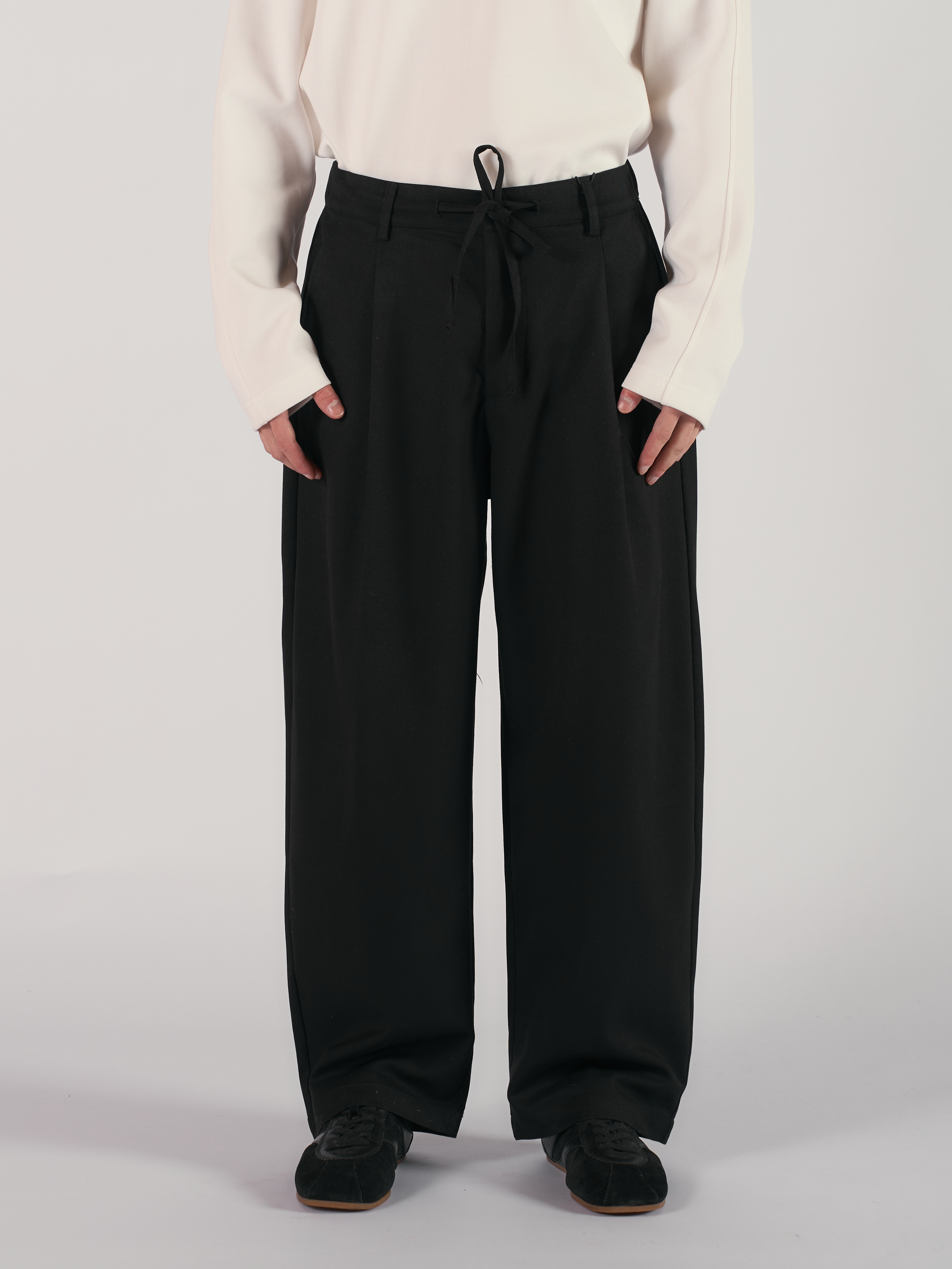 Брюки Sleek Fit широкого кроя, прямого силуэта с защипами. Отличное прочтение неизменной классики в новом исполнении. Благодаря своему крою и цвету, станут незаменимой парой в вашем гардеробе, которую можно сочетать как с пиджаком и рубашкой, так и с худи или свитером. Модель выполнена из мягкой, плотной костюмной ткани. Пояс частично выполнен на резинке, также добавлены кулиски для регулировки обхвата и шлевки для ремня. Тип застежки: пуговица, молния. Два боковых прорезных кармана и два задних с клапанами на пуговицах.