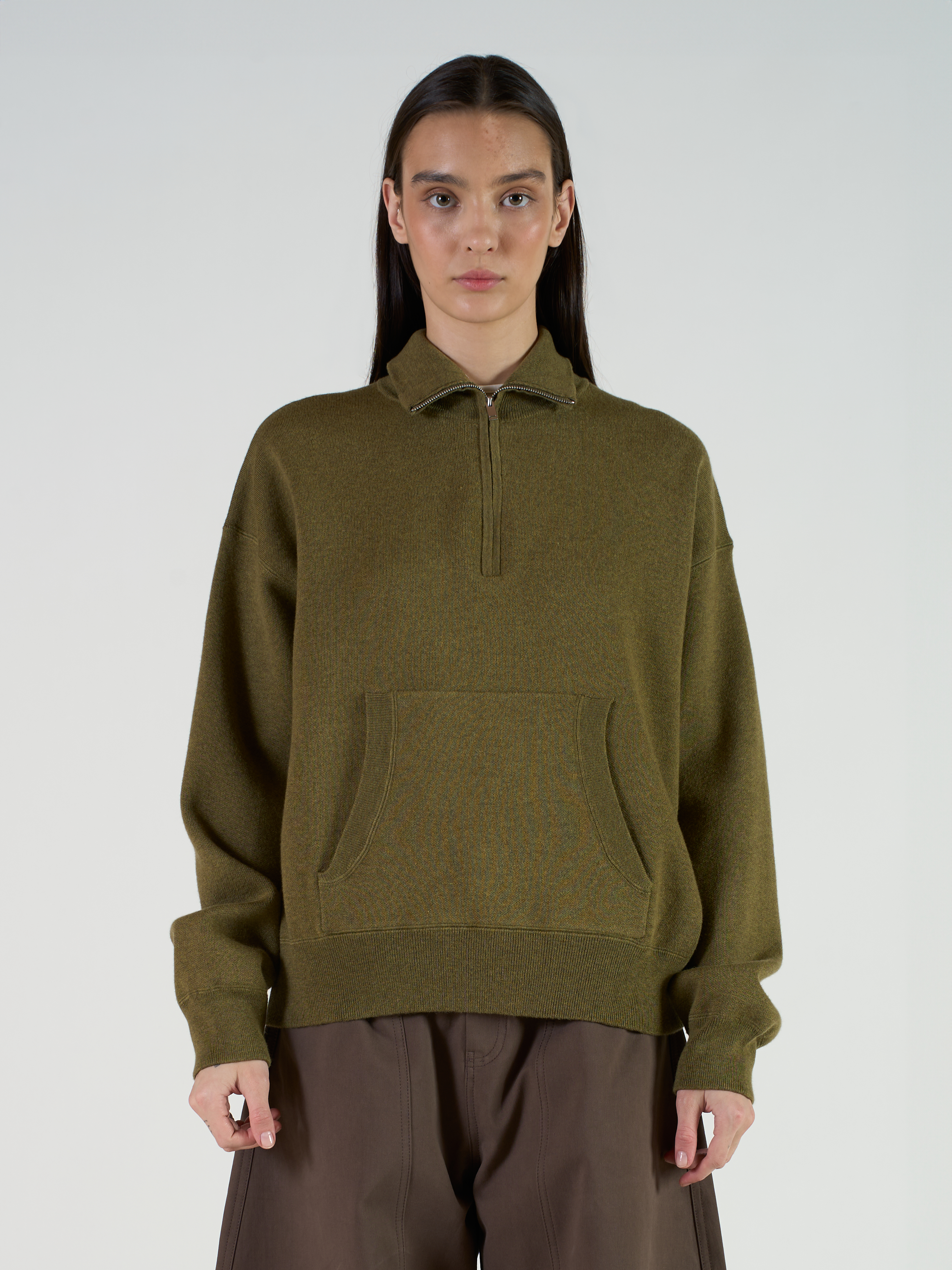 Вязанный анорак Mellow Avo свободного кроя и приспущенной линией плеча. Ворот стойка, застегивается на скрытую молнию. Изделие выполнено из смесовой пряжи плотной вязки, которая хорошо держит свою форму и сохраняет тепло. На передней части расположен накладной карман. Параметры модели Рост: 173 см Грудь - 80 см, талия - 62 см, бедра - 90 см Размер на модели: ONE SIZE