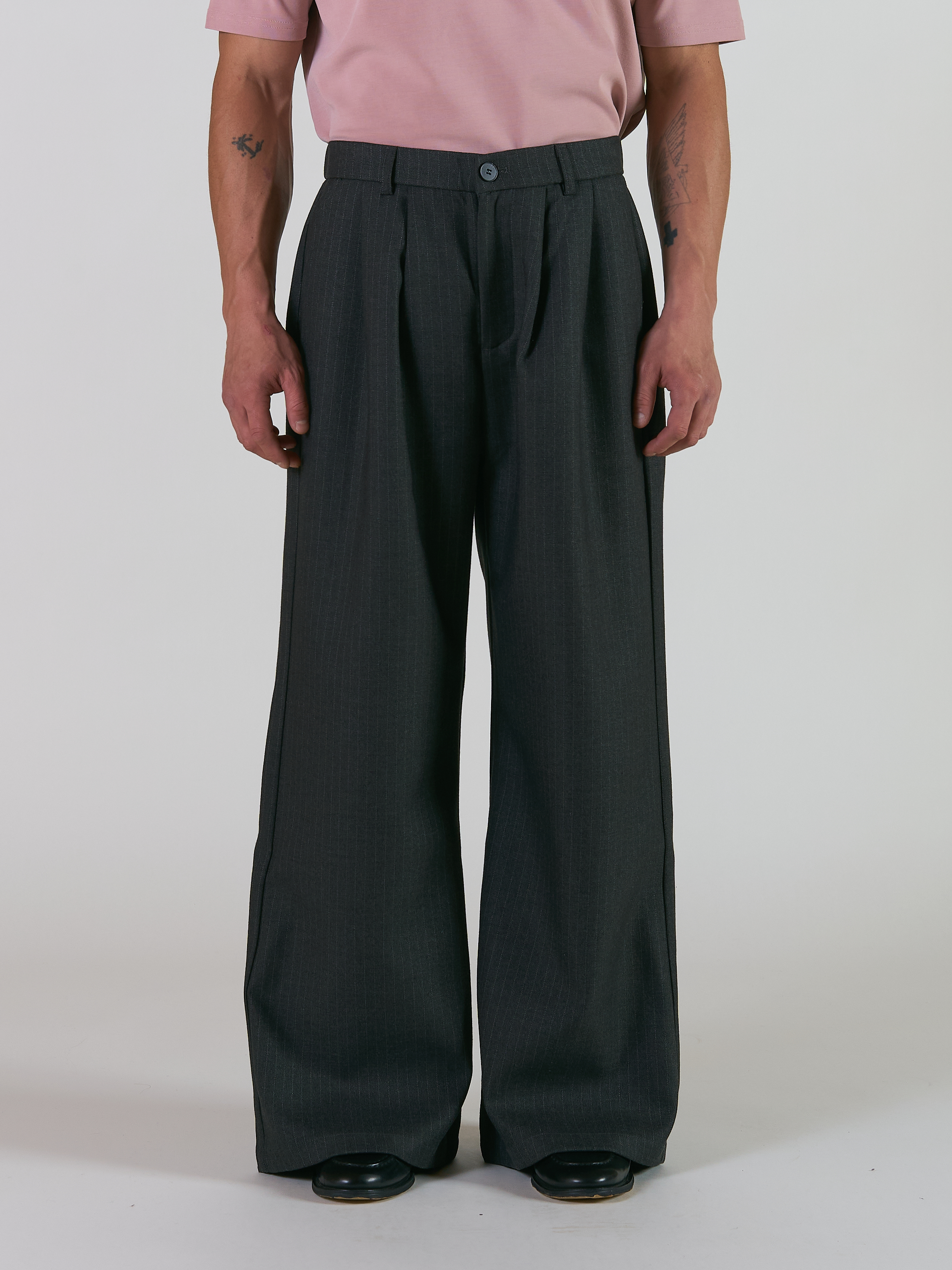 Брюки Ascot оверсайз кроя, немного расклешенные к низу. При этом сохраняют свой классический вид. Модель выполнена из мягкой смесовой ткани в тонкую полоску. Пояс частично выполнен на резинке со шлевками для ремня. Застегивается на пуговицу и молнию. Два боковых прорезных кармана и два задних. Параметры модели Рост: 180 см Грудь - 90 см, талия - 75 см, бедра - 87 см Размер на модели: М