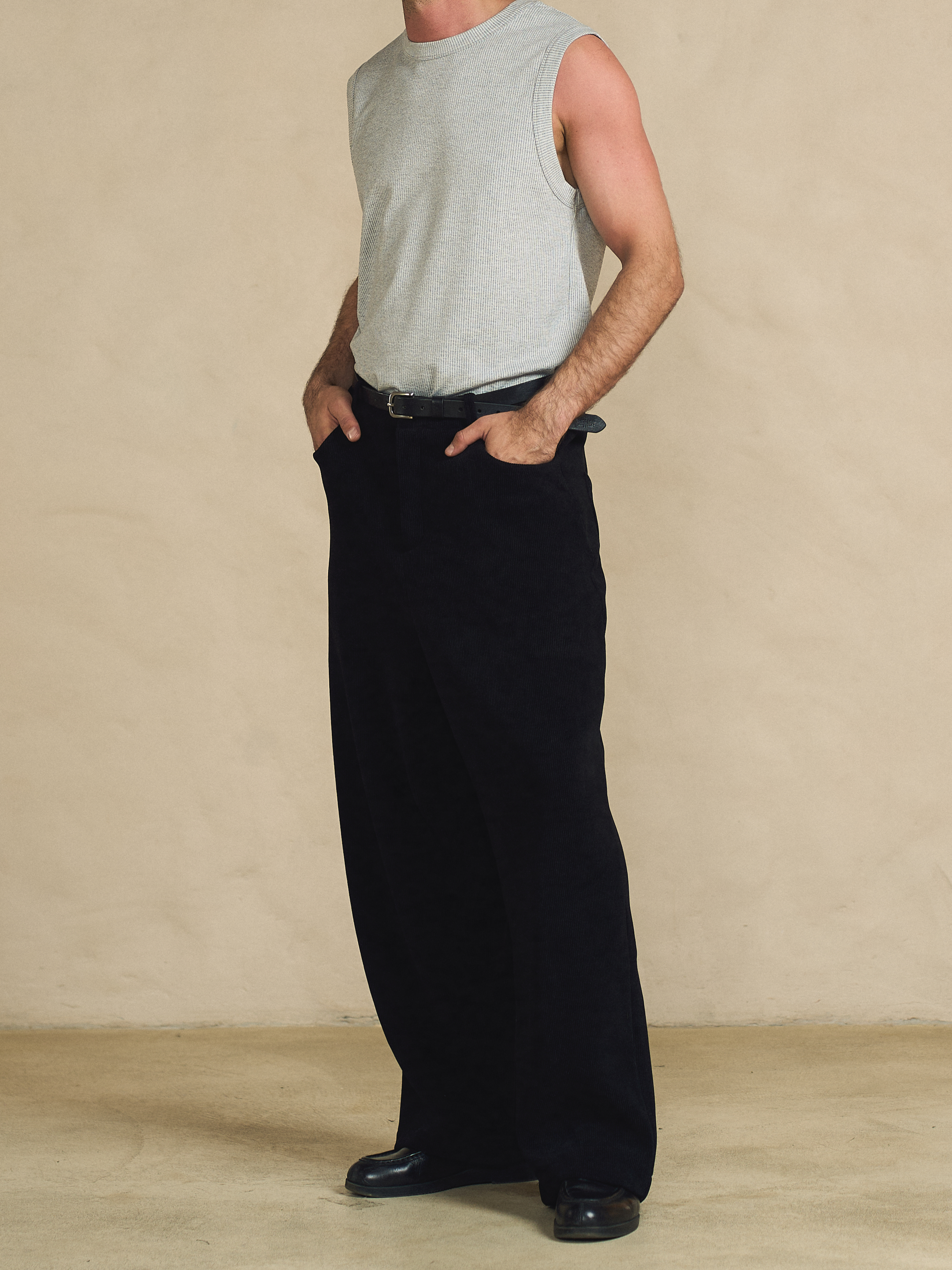 Брюки Velv прямого кроя с приспущенным шаговым швом. Модель выполнена из мягкого мелкого вельвета с струящимся эффектом. Два передних прорезных кармана и два задних накладных. Застегиваются на молнию и пуговицу, также предусмотрены шлевки для ремня. Отдельно можно приобрести пиджак Velv для создания полноценного костюма. *Данный артикул большемерит на 1-1,5 размера, подходит на рост выше 190 см. Параметры модели Рост: 182 см Грудь - 95 см, талия - 76 см, бедра - 95 см Размер на модели: М